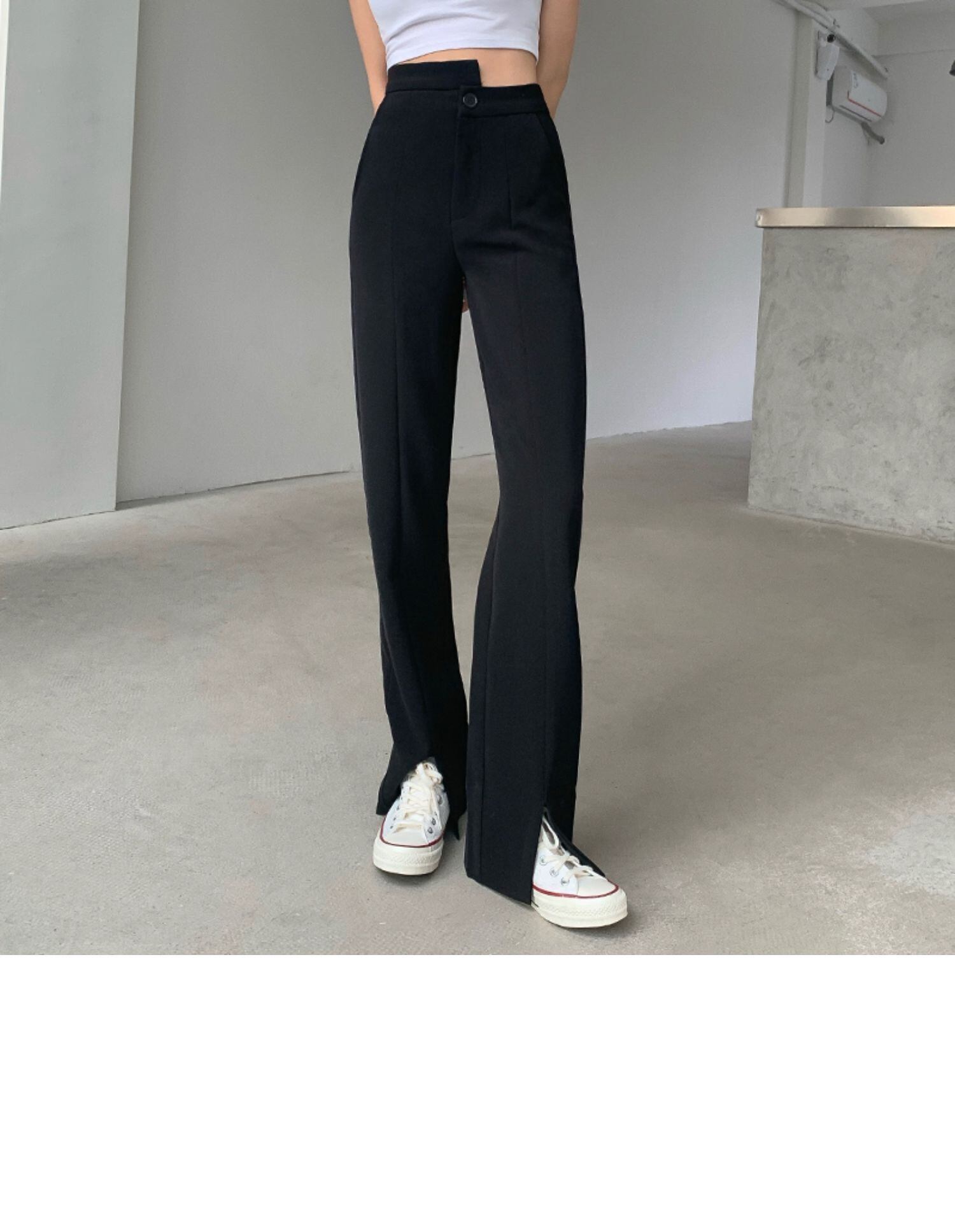 スプリングオータムスタンダードウェストワイドレッグパンツ スリムレディース レトロ 春物 秋物 ワイドパンツ ドラファッションホール92695720541