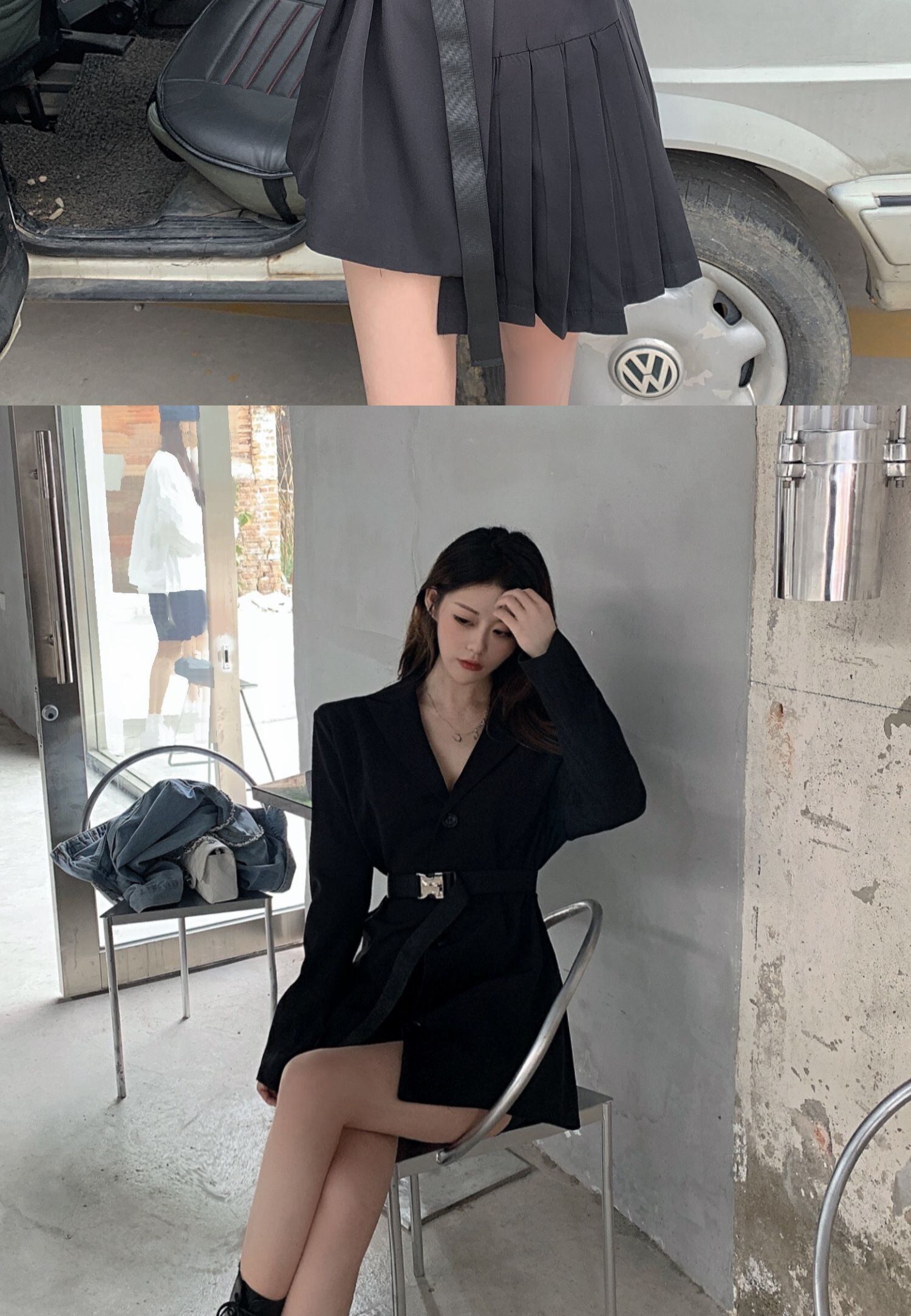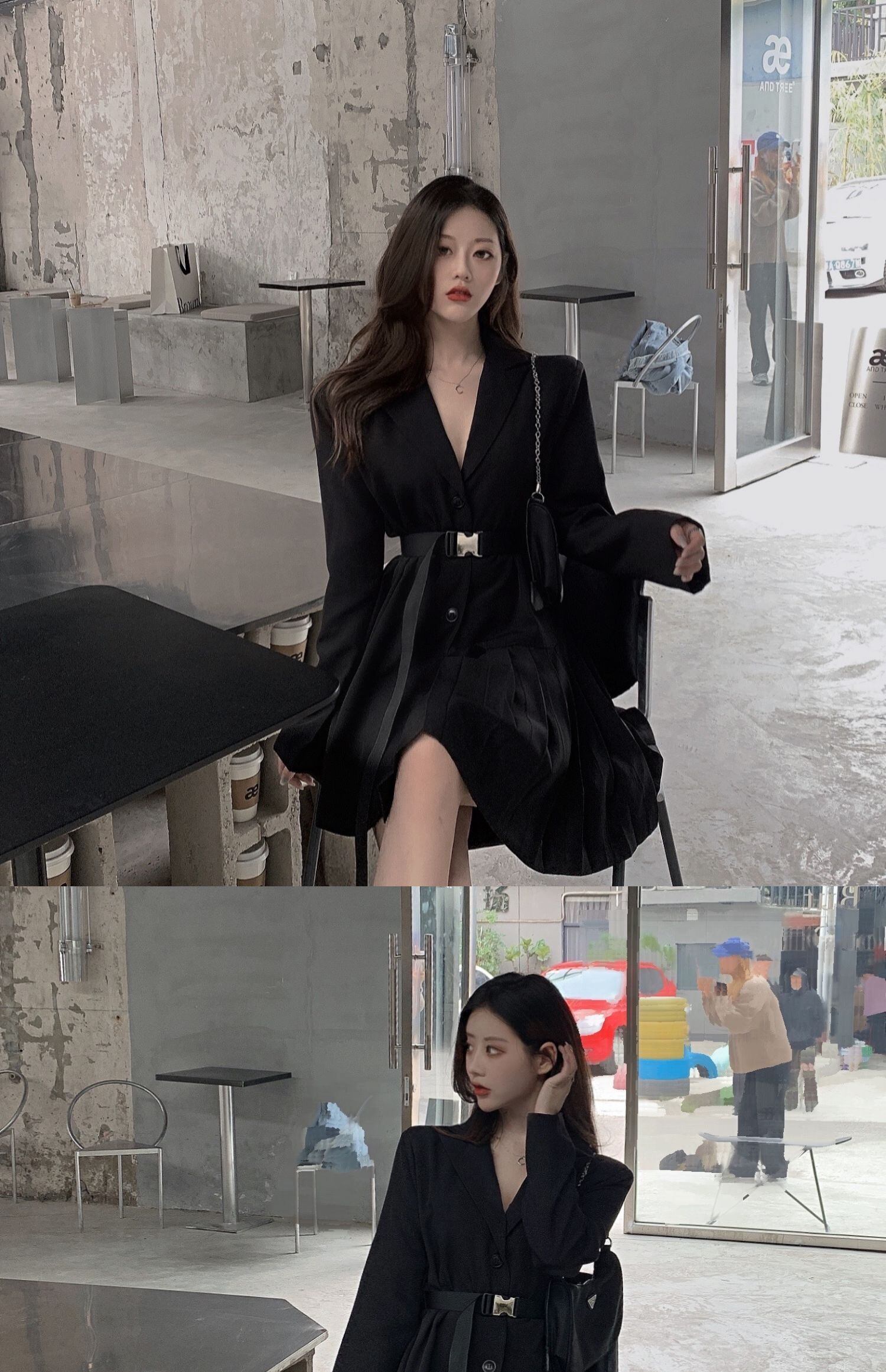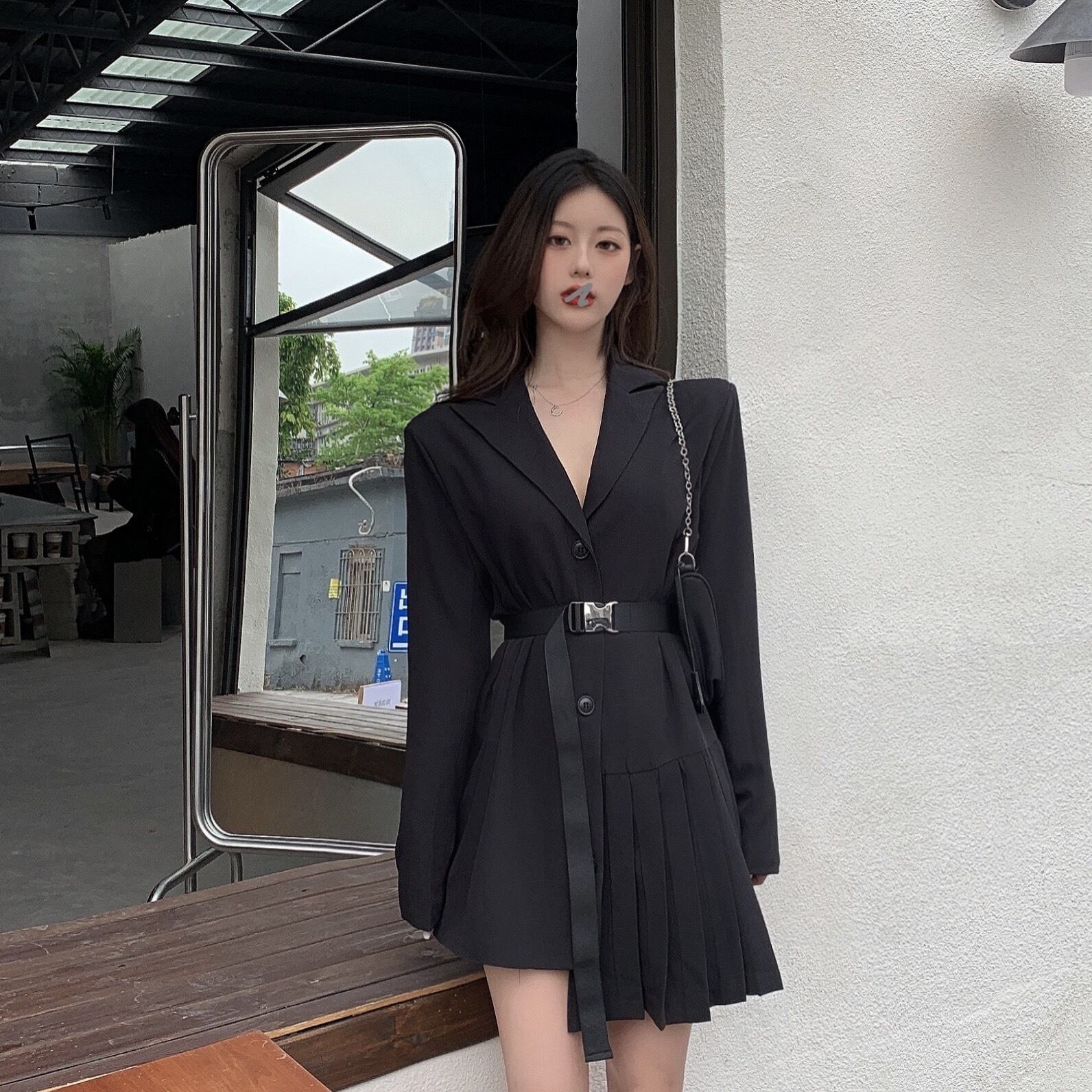 ブラックワンピースドレス スプリングカラー薄手スカート 春物 ピュア ドラファッションホール30023810542