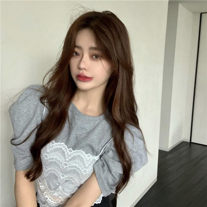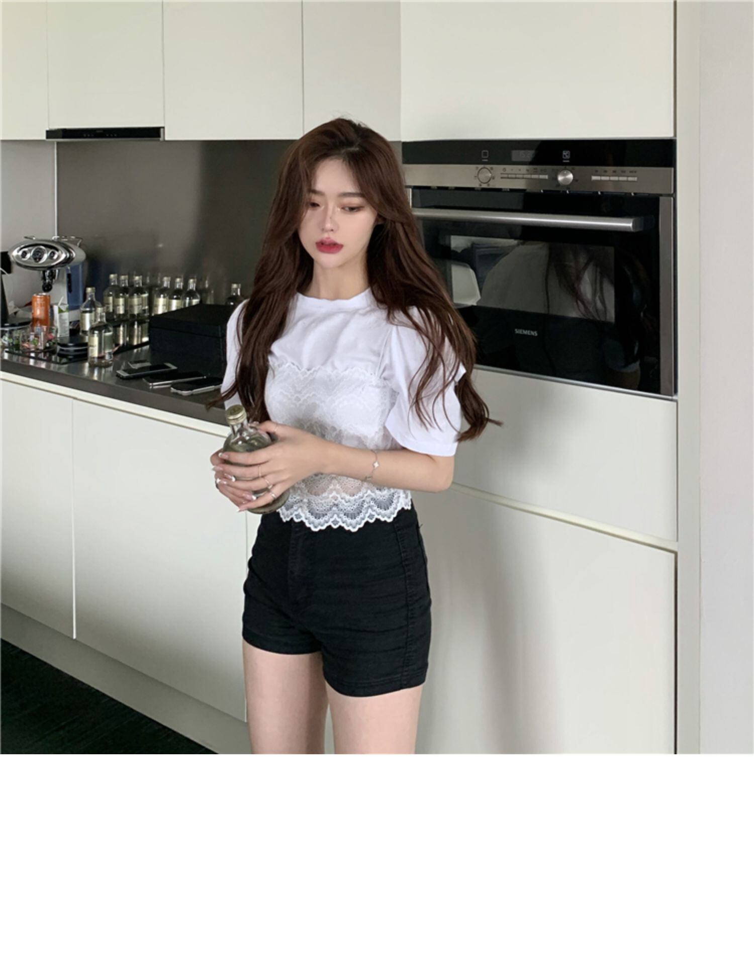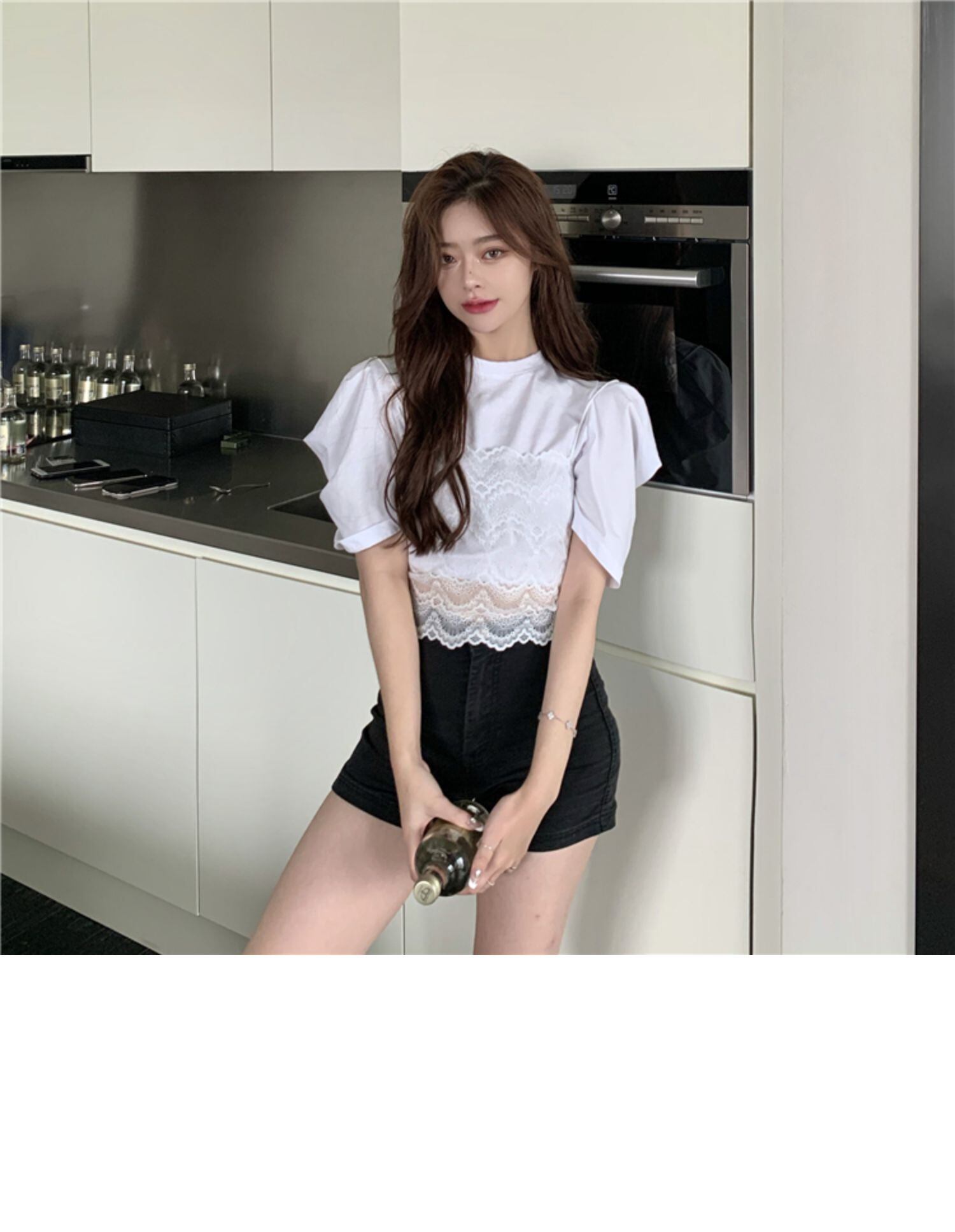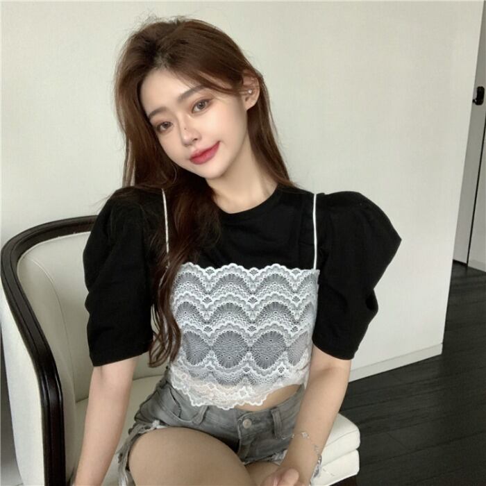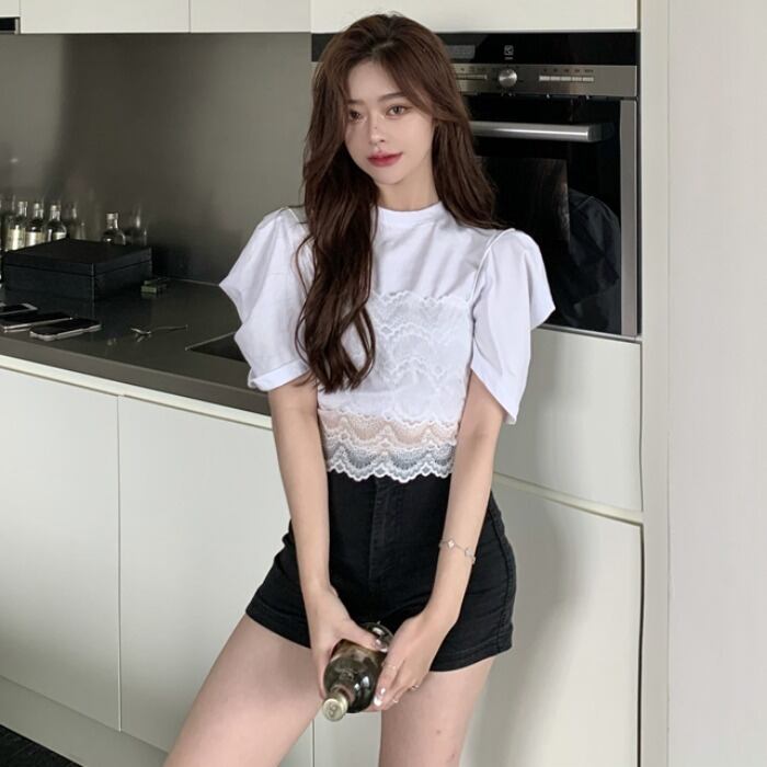 サマースリーブショートスタイルTシャツ レース 大人ガーリー スウィート キュート カジュアル 夏物 ドラファッションホール82775406201