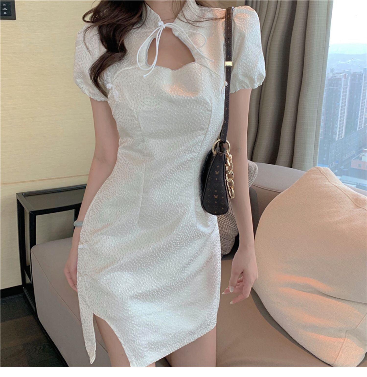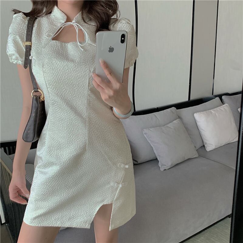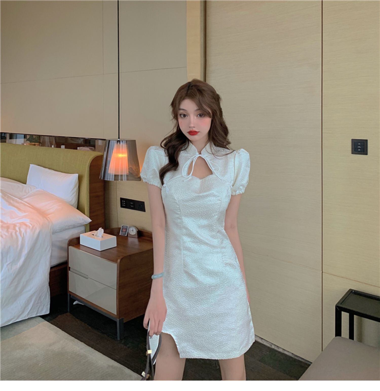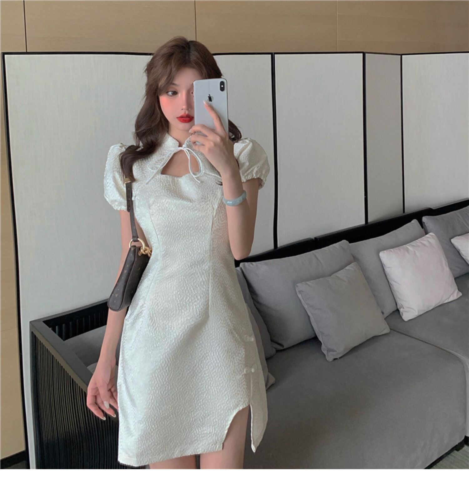 スタンダードスリムドレス サマージャカードトライアングルギャザースカート レトロ 夏物 ドラファッションホール19652021399