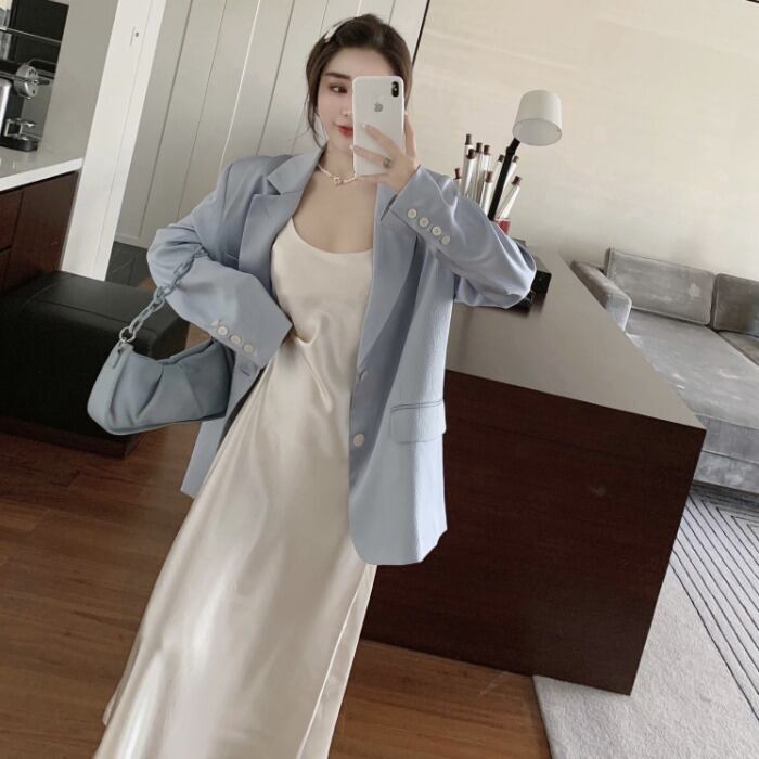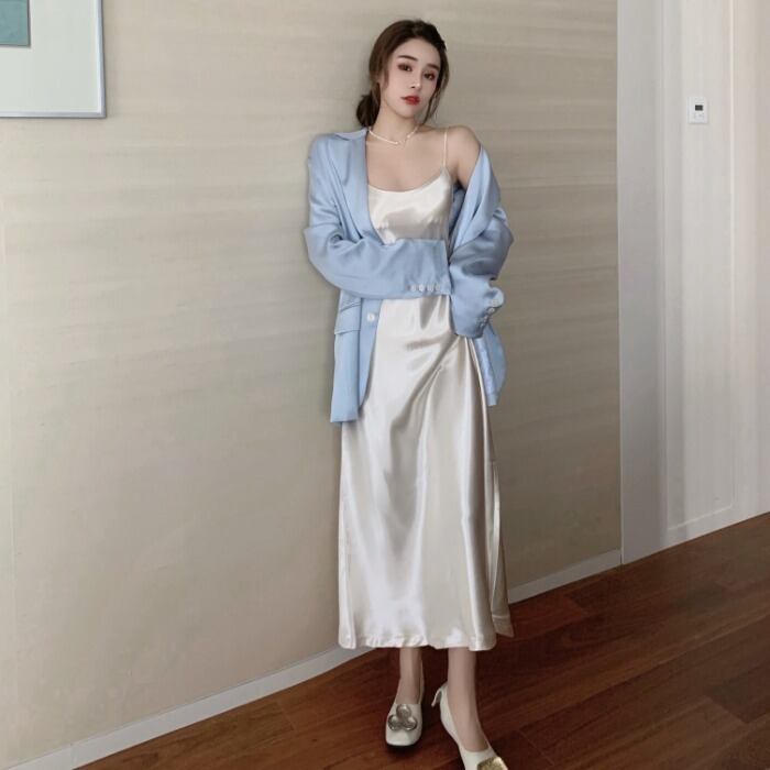 スプリングサテンロングドレス ルーズジャケット スタイルレディース 春物 ドラファッションホール35224076088