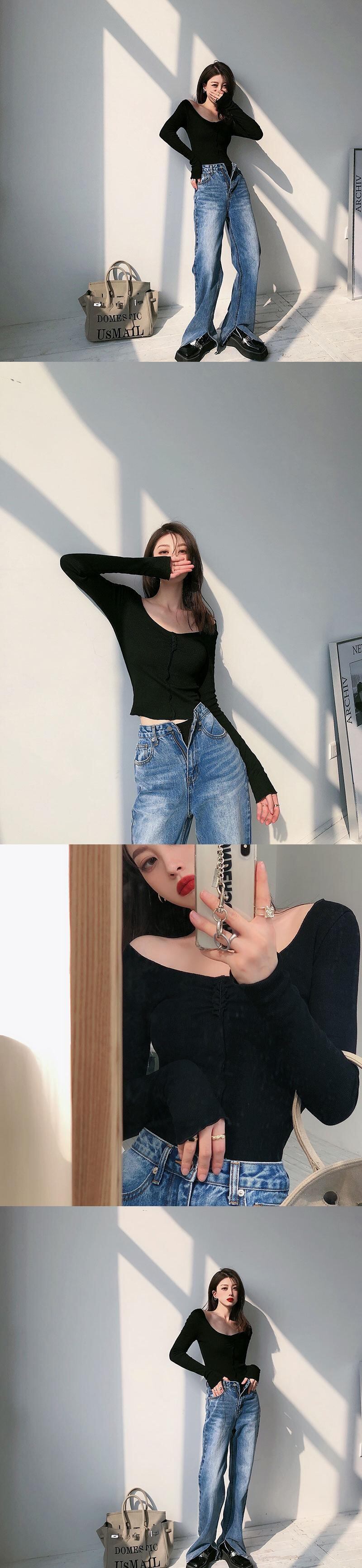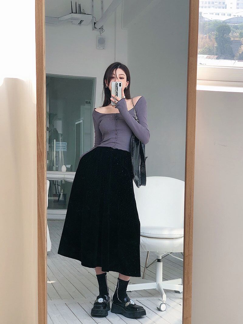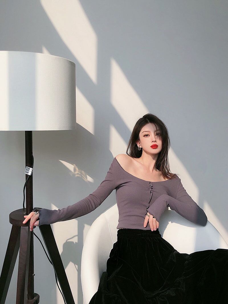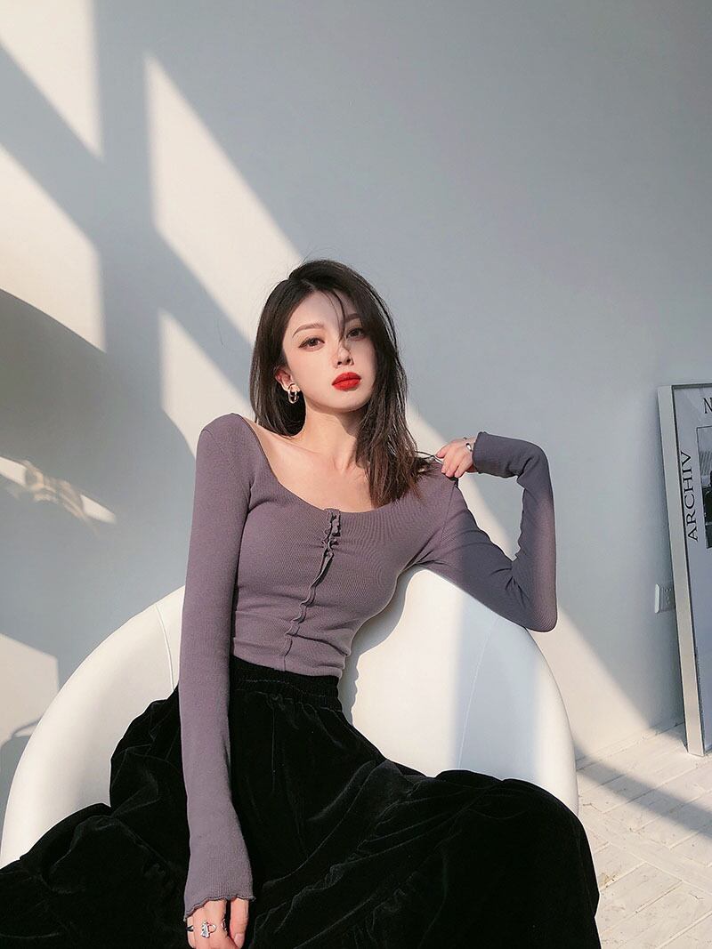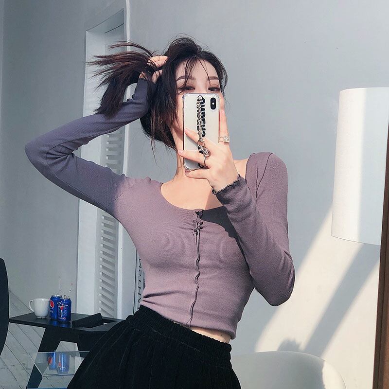 スプリングソリッド カラースリム薄手ショートTシャツ ロング 春物 ソリッドカラー ドラファッションホール61779899657