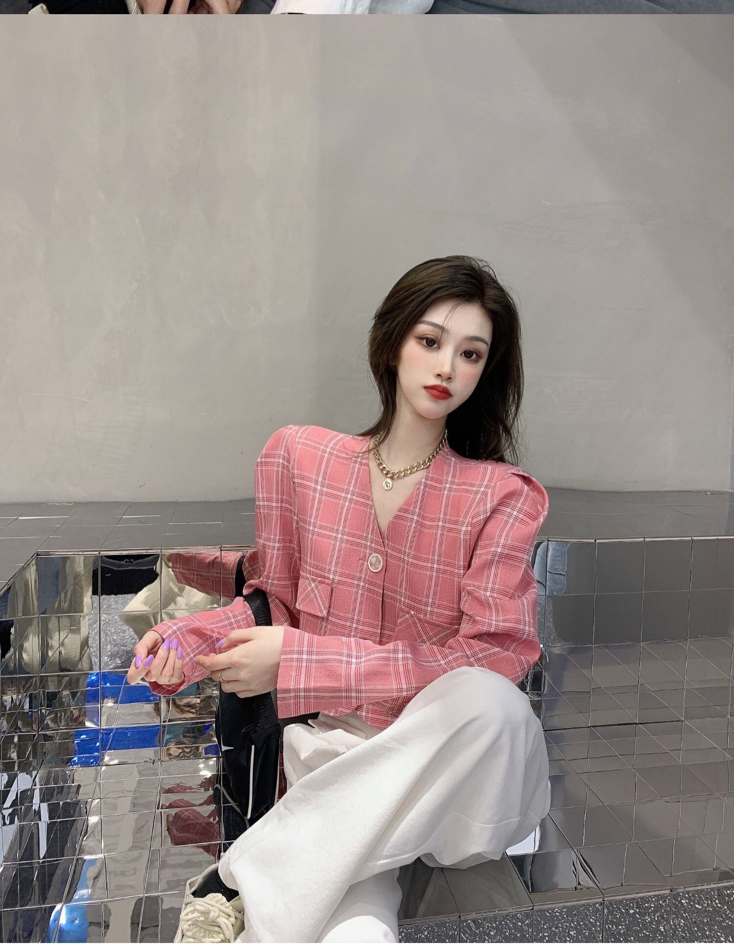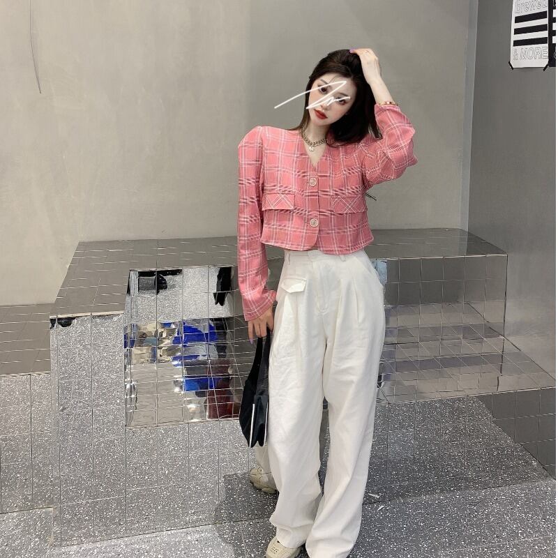 格子柄ジャケット スプリングソリッド カラーカジュアルルーズハイウェストウェストパンツ 春物 ソリッドカラー ドラファッションホール29184656757