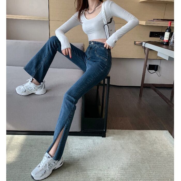 パンツ スプリングオータムスリットスリムスタンダードハイウェストウェストジーンズ レトロ 春物 秋物 ドラファッションホール64727544837