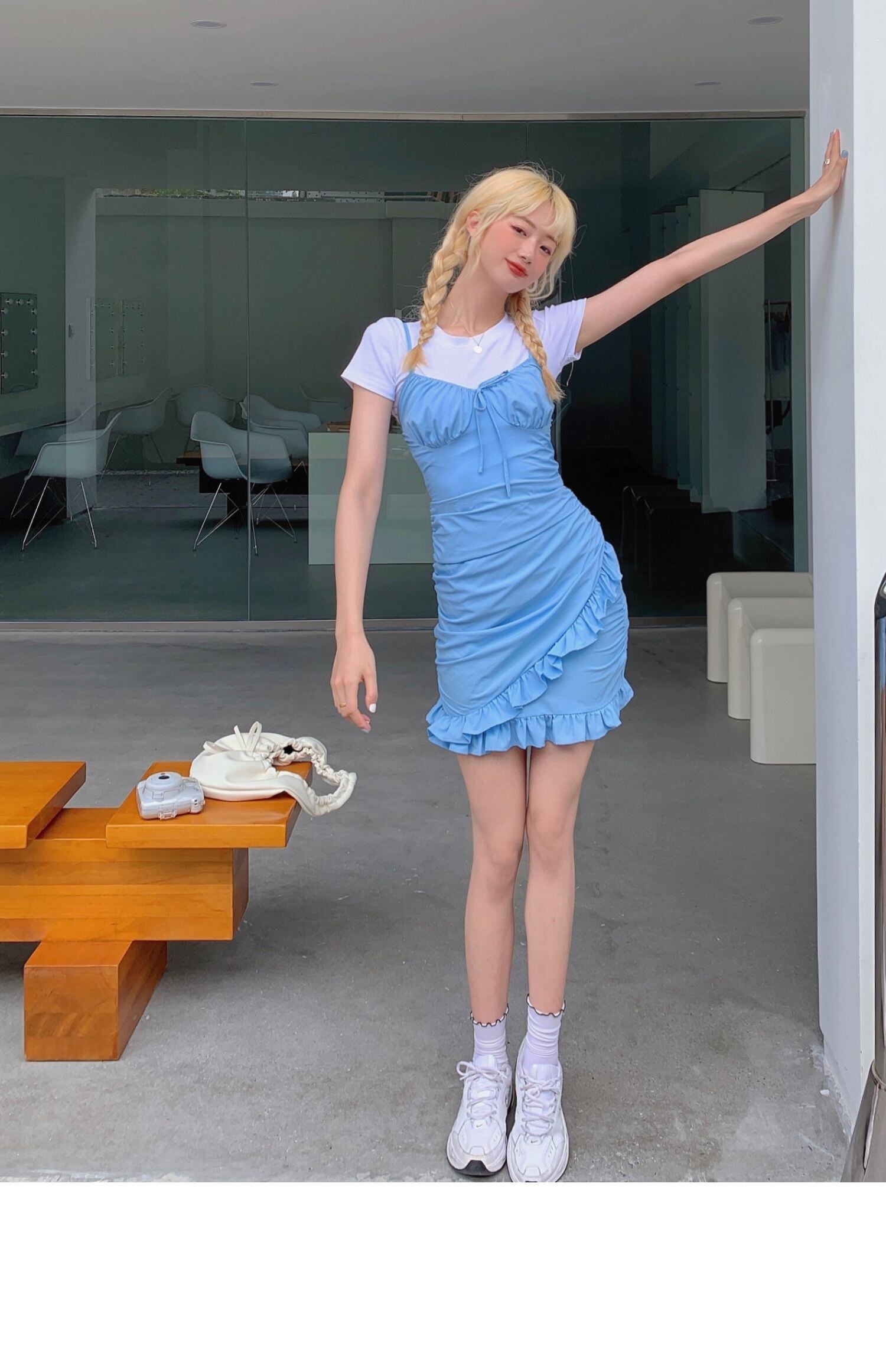 スカート サマースタンダードブルーショートスリムドレス レトロ 夏物 ドラファッションホール6283450784