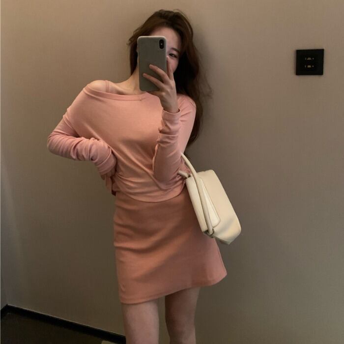 色:ピンクトップ5929#,グレートップ5929#,グレーのドレス,ピンクのドレス