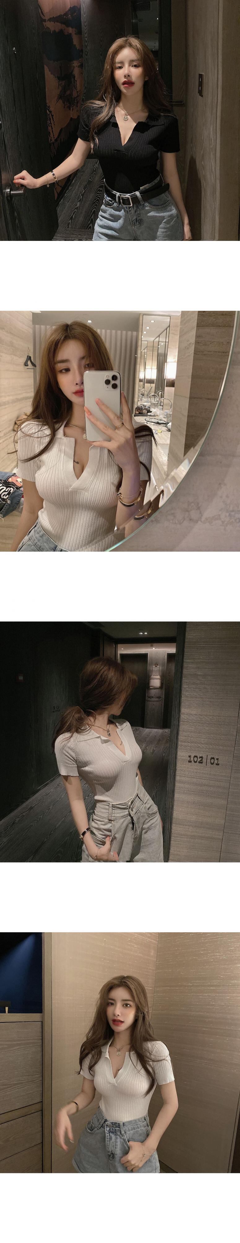 サマースタイルスタンダードVネック半袖スリーブレッドニットスリムトップス レディース ショート レトロ ハーフスリーブ 夏物 ドラファッションホール19987190579