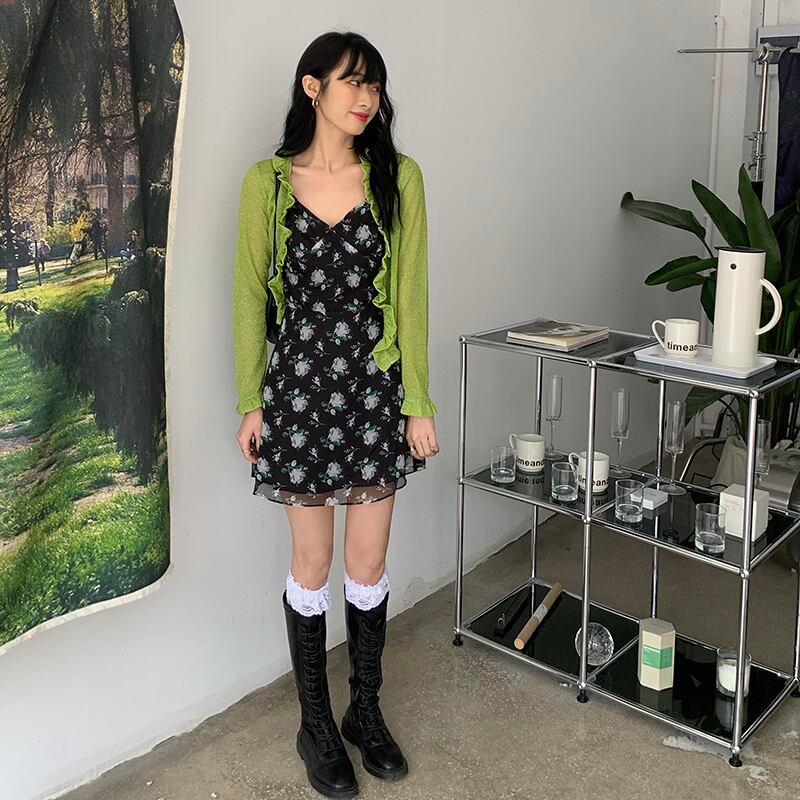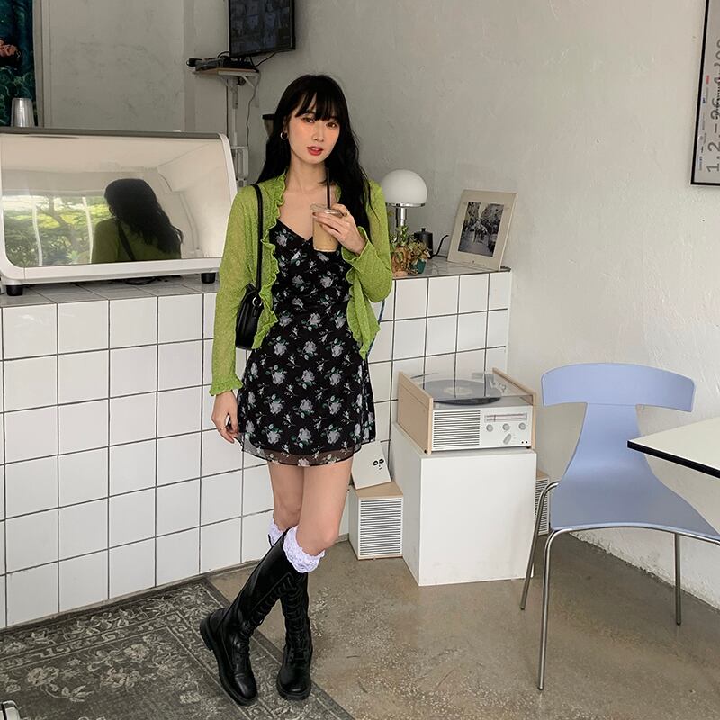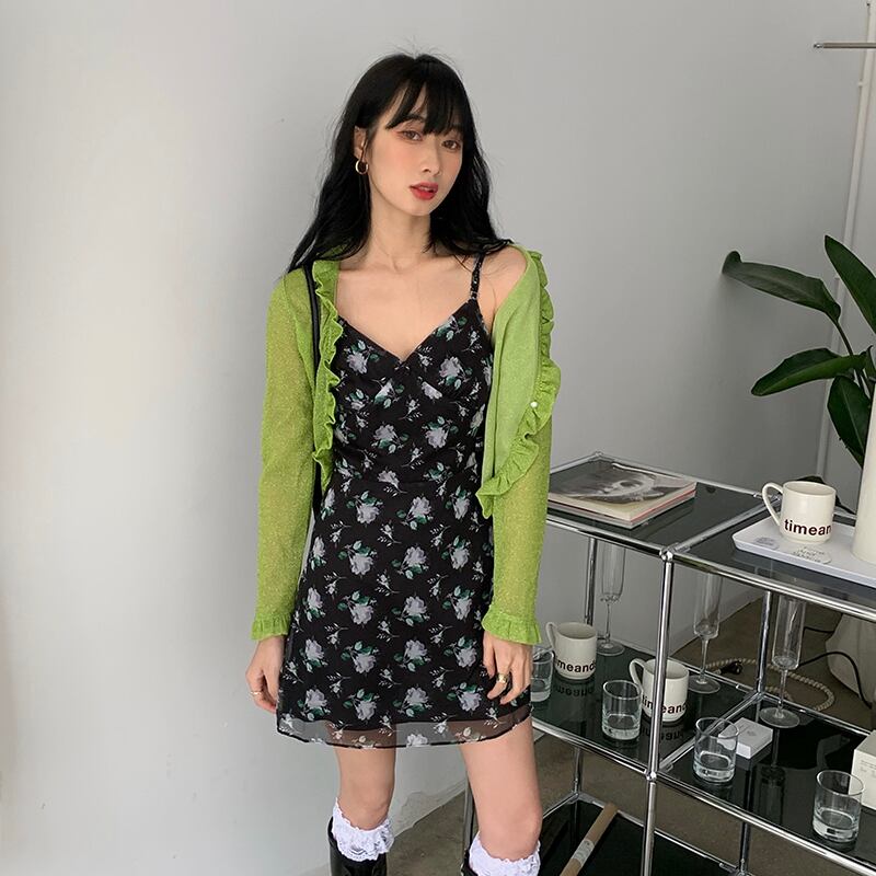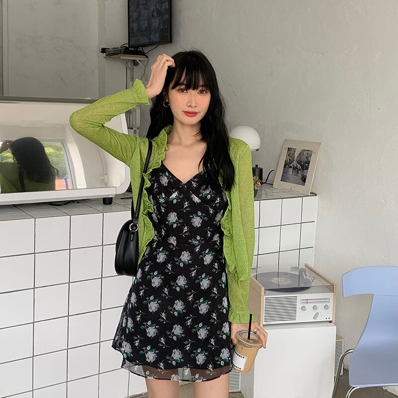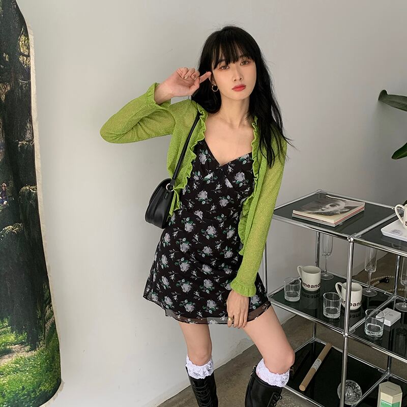 カーディガンサマーソリッド カラーフローラルドレス 夏物 花柄 ソリッドカラー ドラファッションホール52410881974