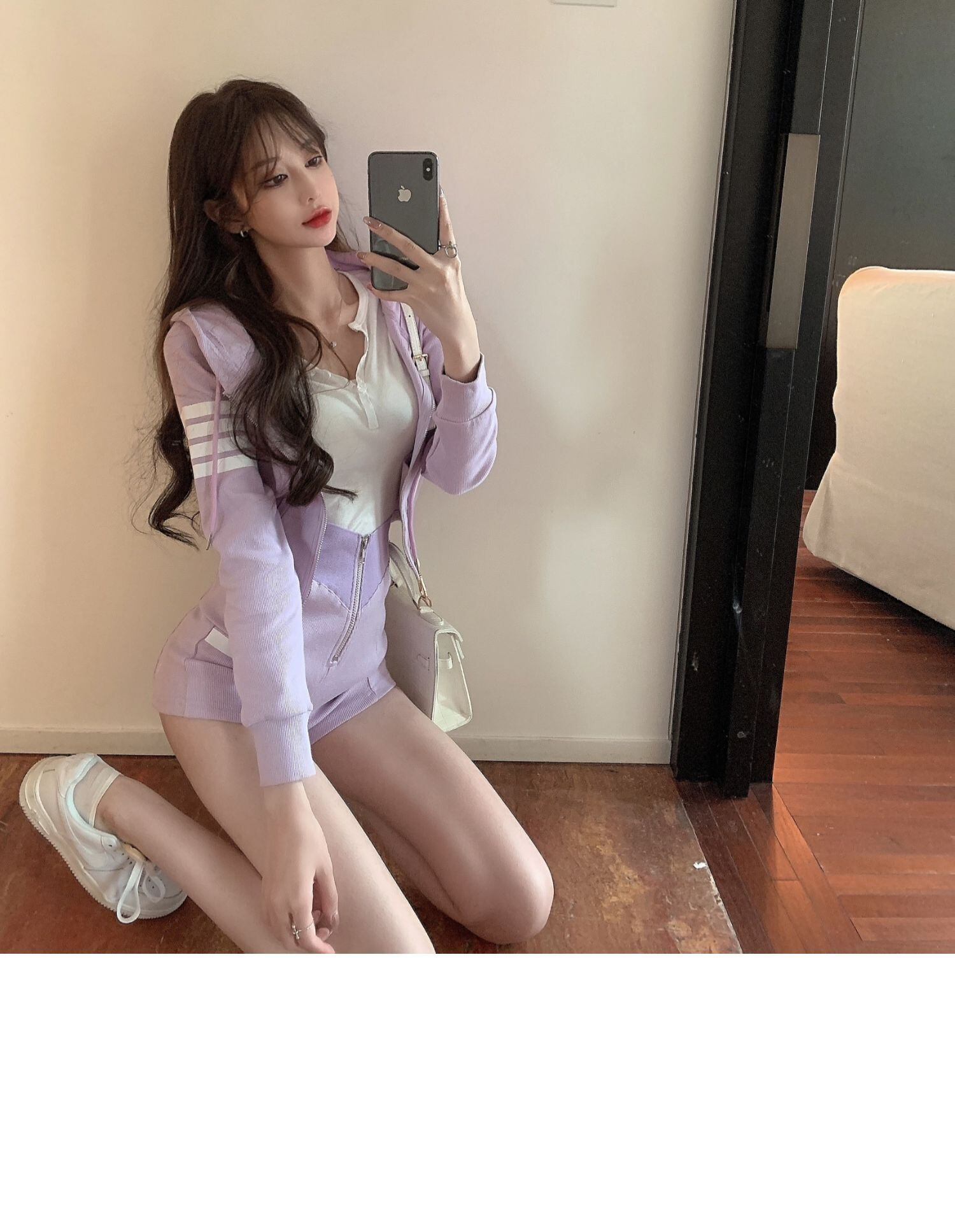 スプリングサマースタイルショートフードカーディガンジャケット ハイウェストウェストショーツ レディース 春物 夏物 ブルマー ドラファッションホール22381697619