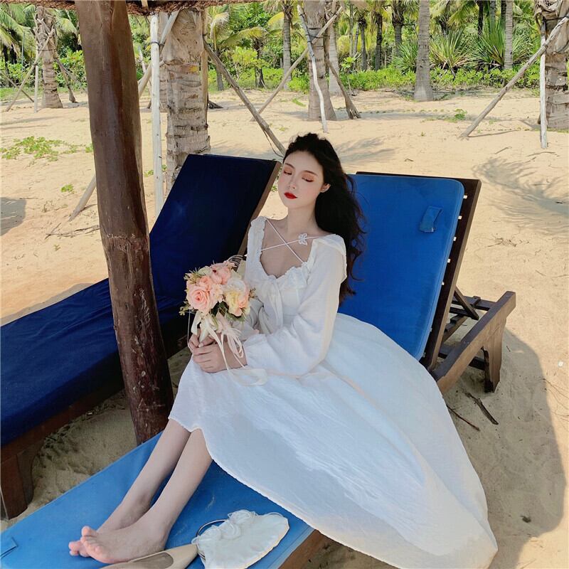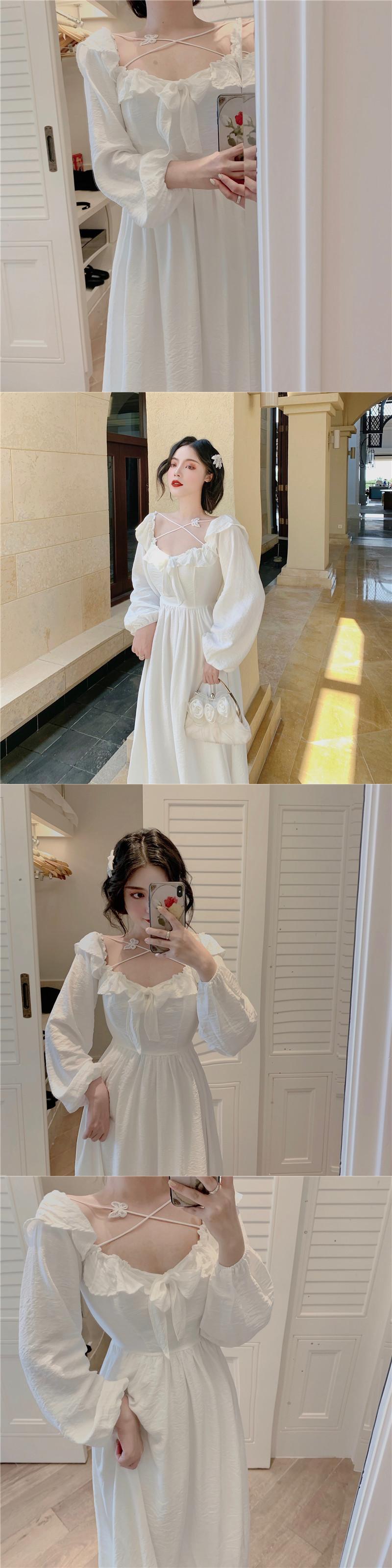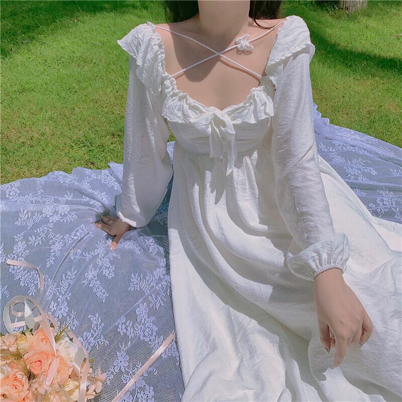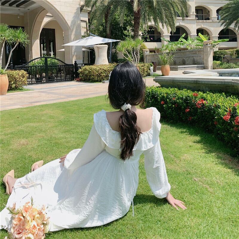 ロングウェスト薄手ホワイトドレス オータムスカート 秋物 ドラファッションホール31895074768