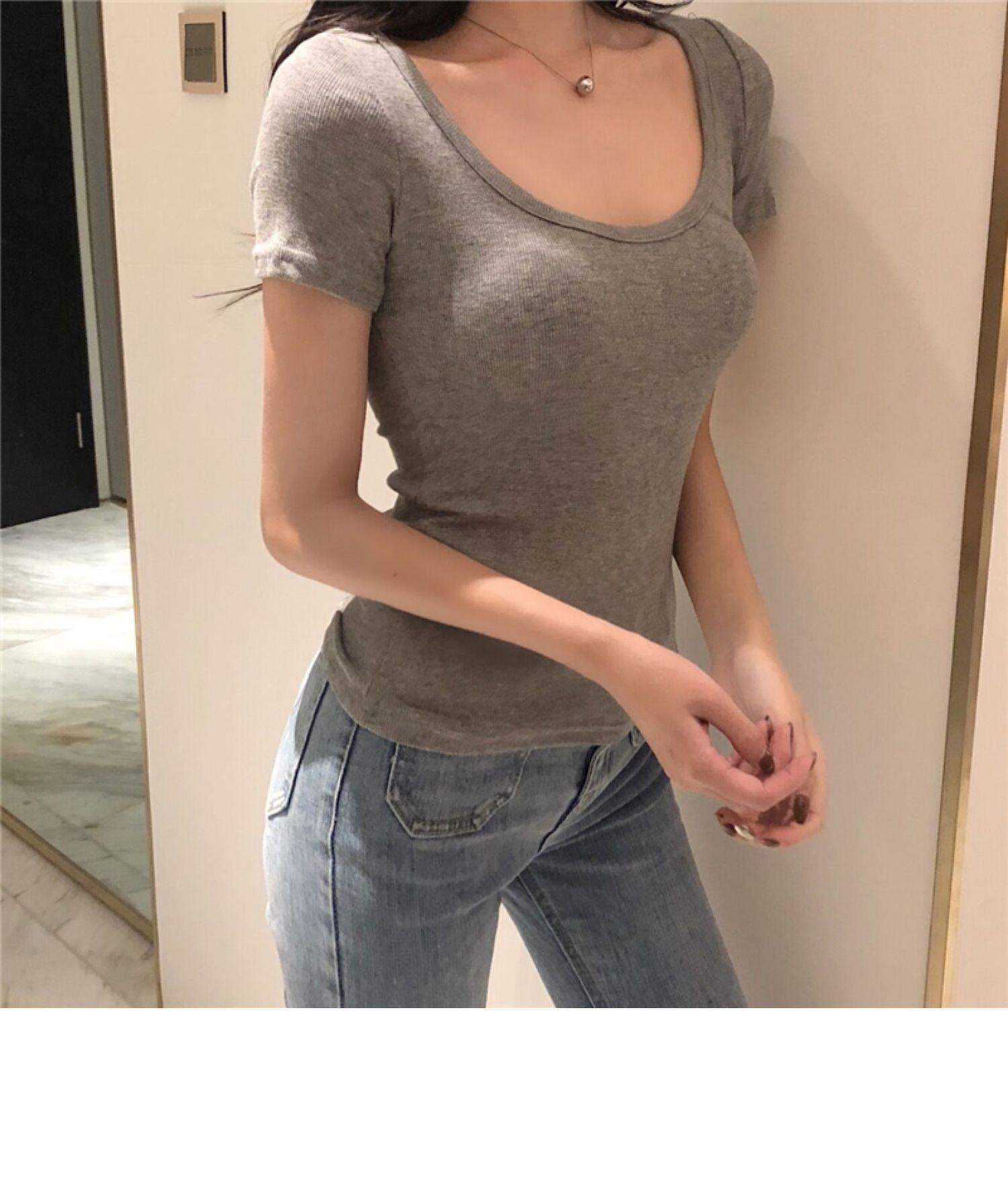 スプリングトップス ソリッド カラースリムベーシックTシャツ 春物 ソリッドカラー ドラファッションホール25013060112