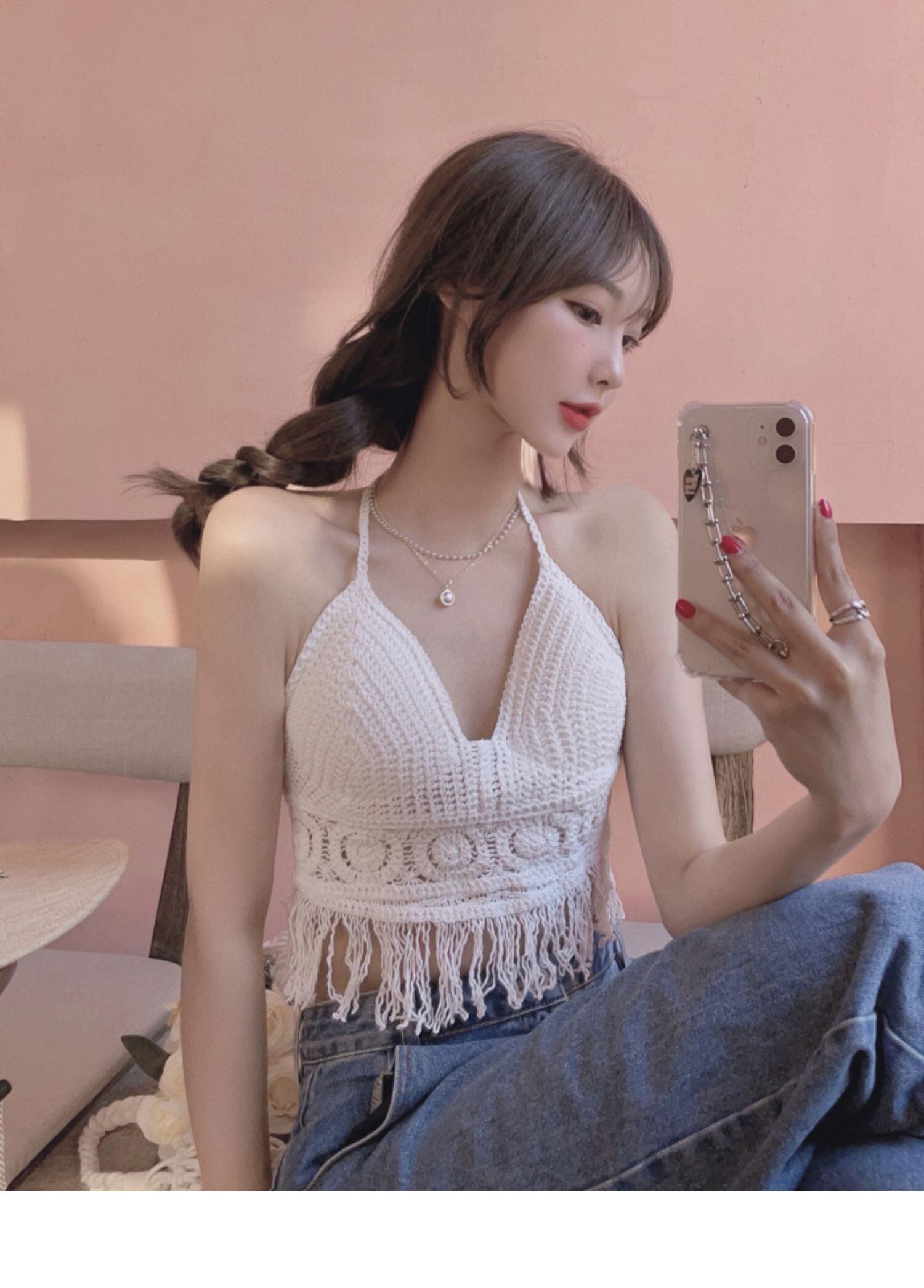 サマーホルターレースホワイトトップス 夏物 ドラファッションホール22430388717