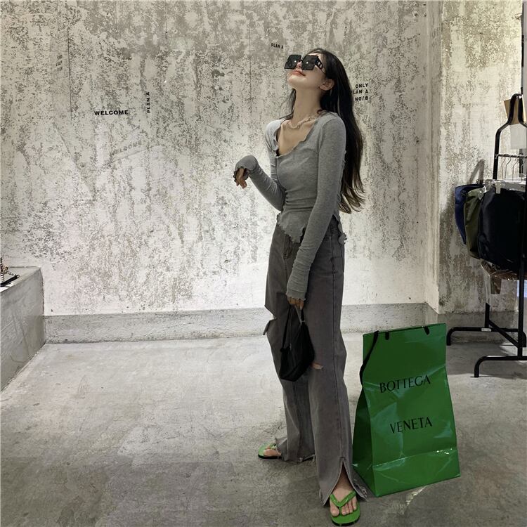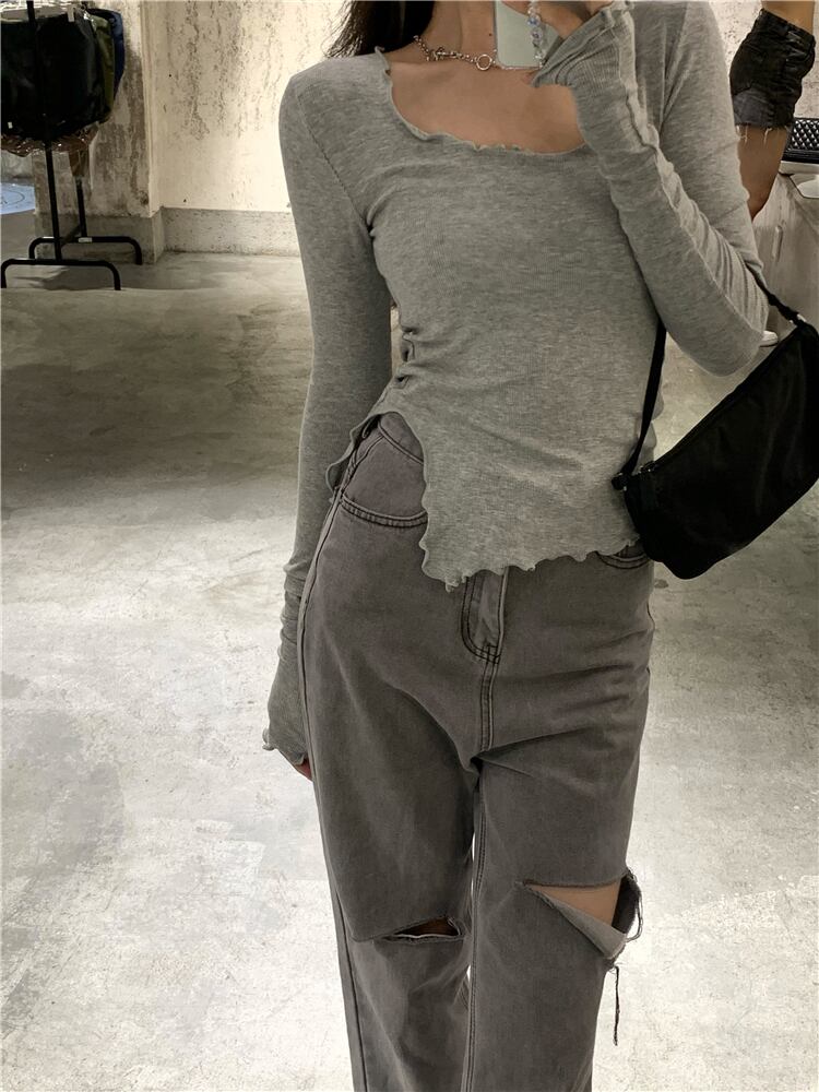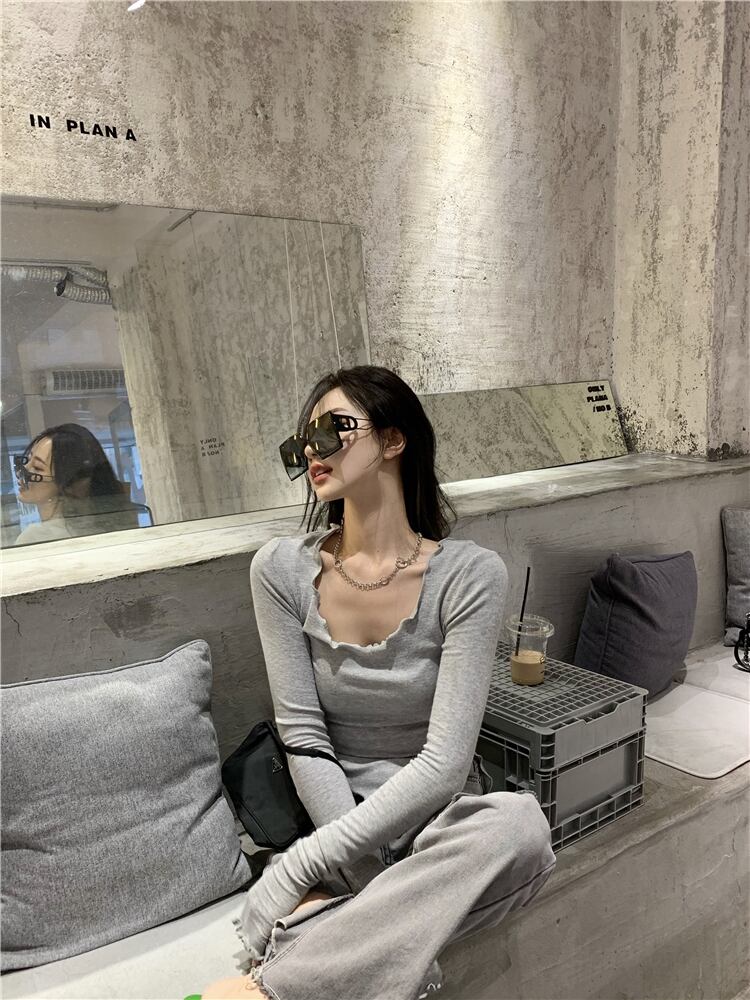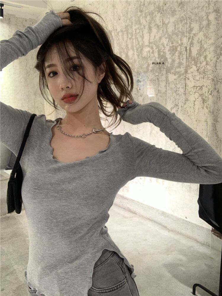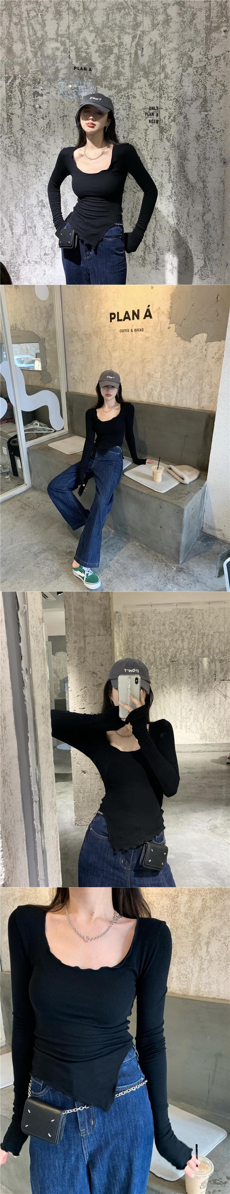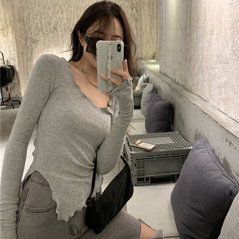 セーター オータムレッドシャツ スリムブラックニットトップス 秋物 ドラファッションホール51552583359