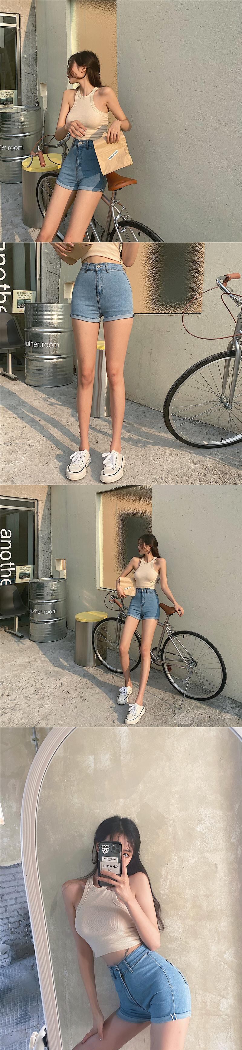 ジーンズ ハイウェストウェスト薄手サマースタイルスタンダードショーツ パンツ レトロ 夏物 ブルマー ドラファッションホール11444615563