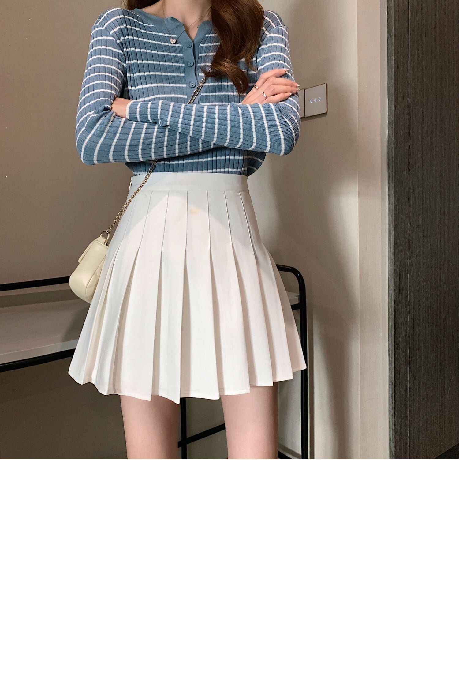 スカート スプリングサマースタンダードハイウェストウェストスリムプリーツカラーショート レトロ 春物 夏物 ピュア ドラファッションホール88378918223