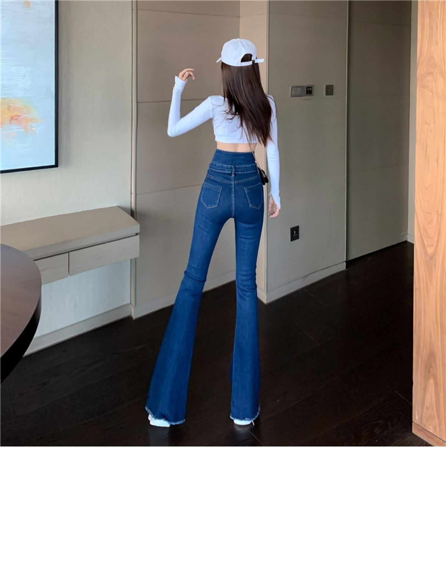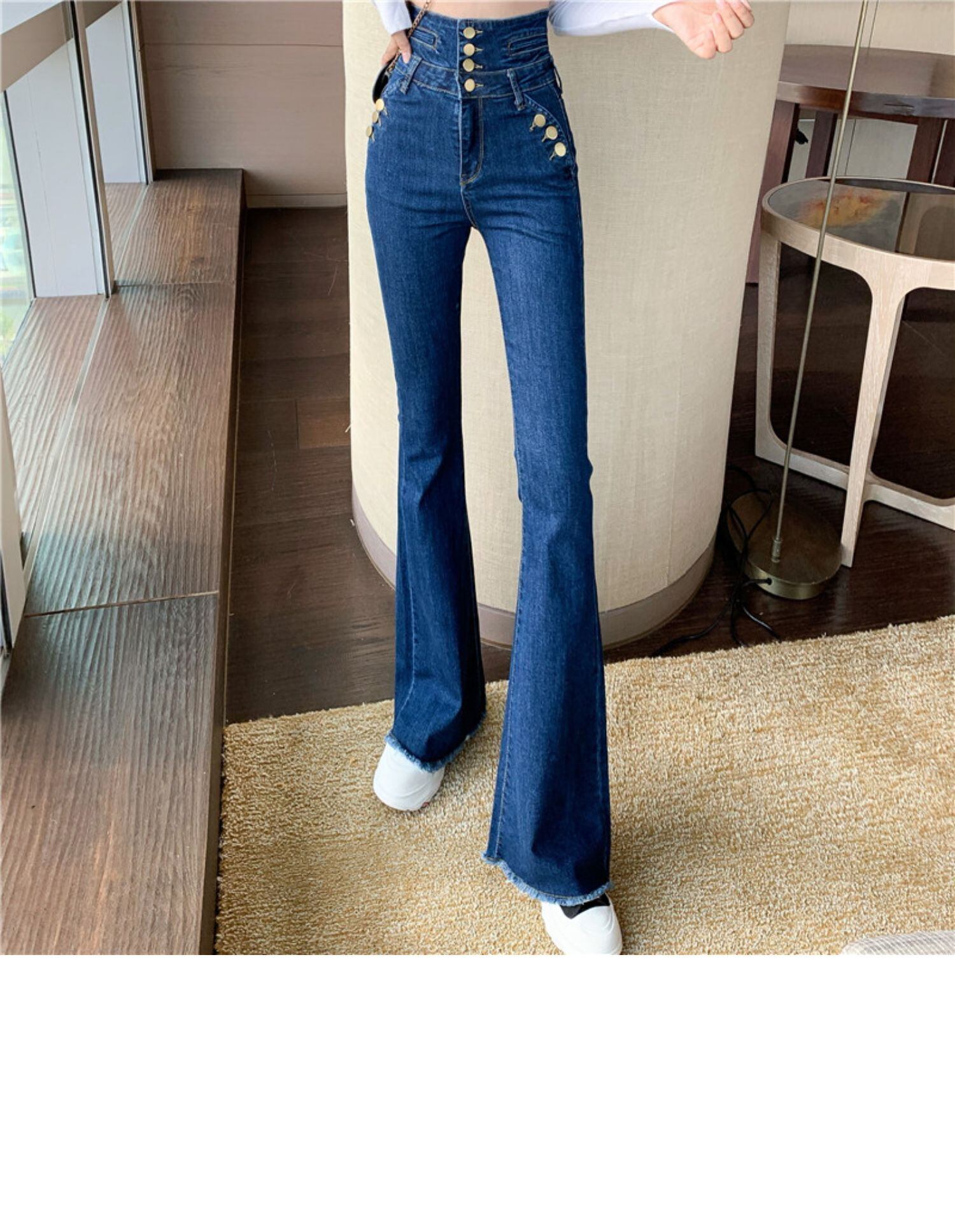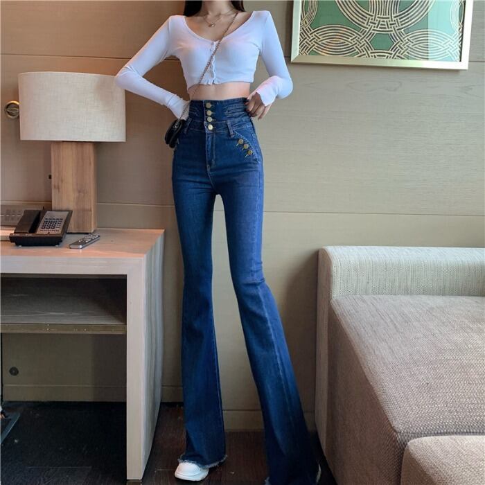 ジーンズ レディーススプリングストレッチハイウェストウェストスリム レッド エラスティック 伸縮 春物 ドラファッションホール64062081627