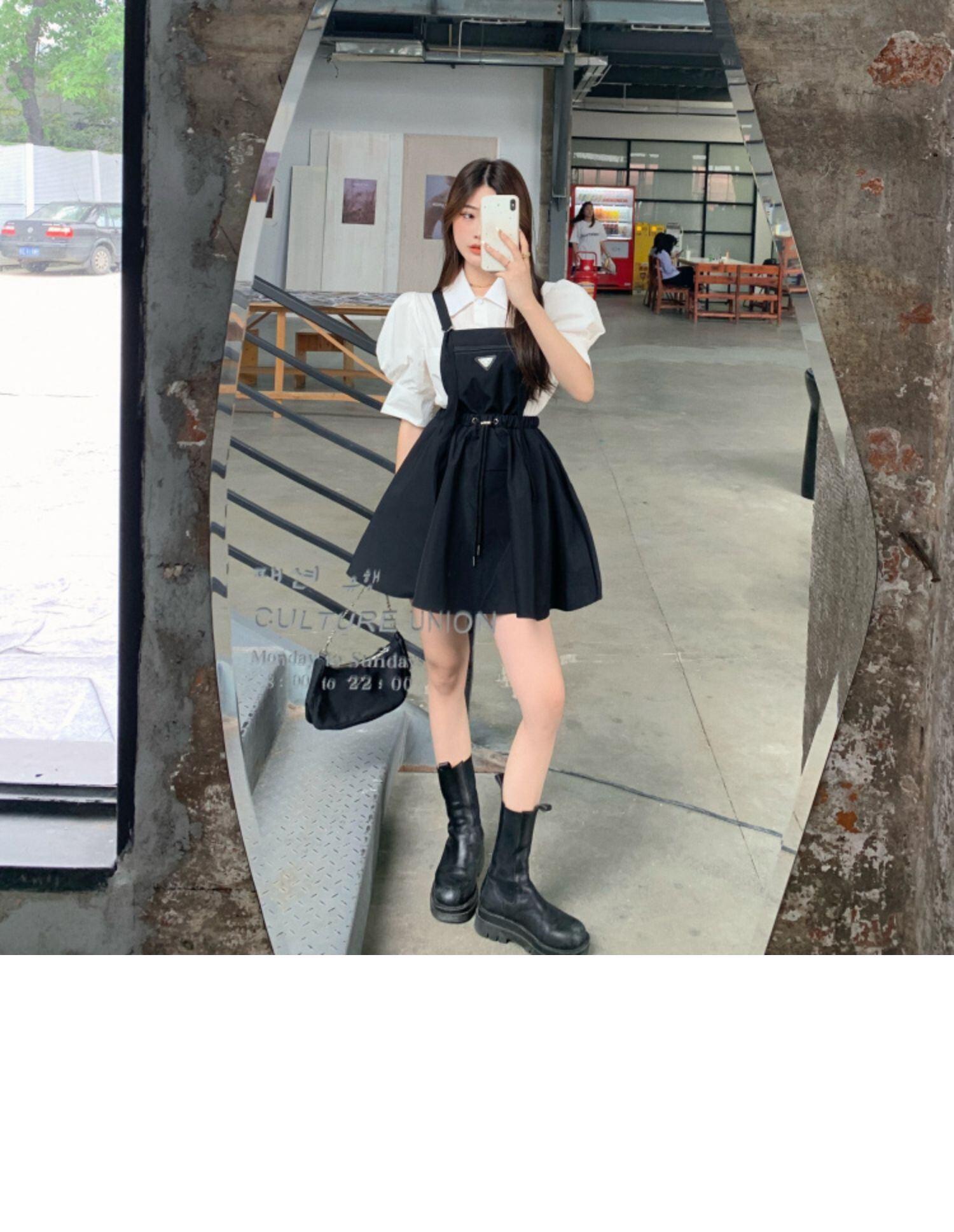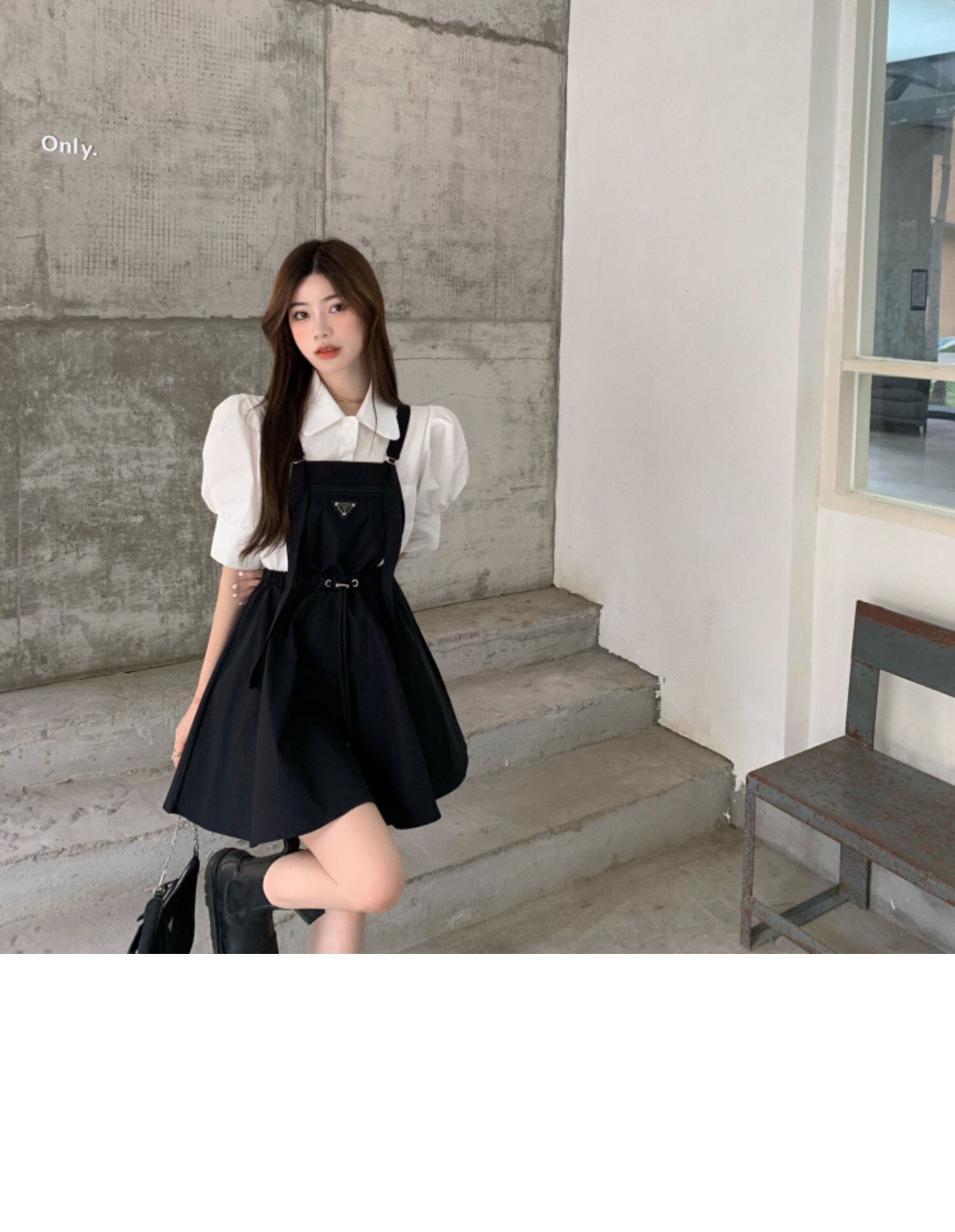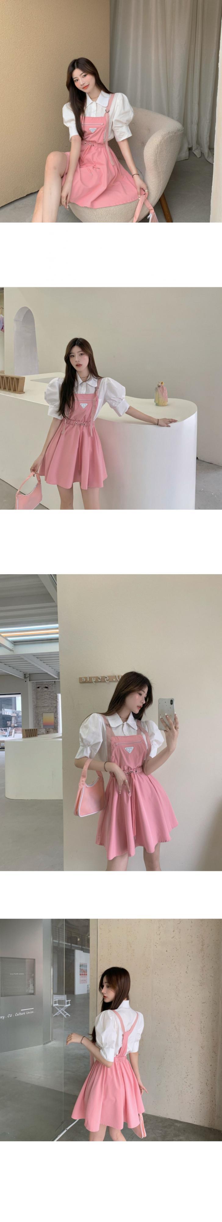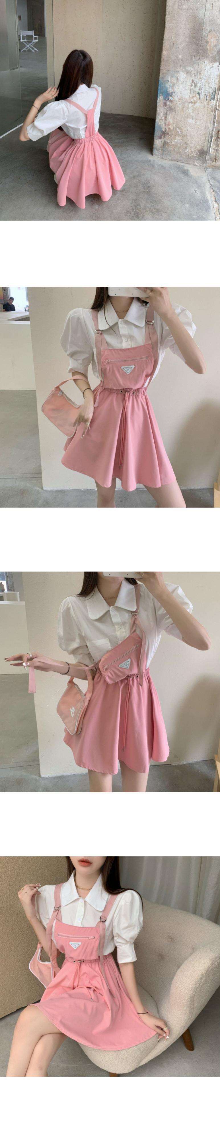 色:ブラックストラップドレス,ピンクのストラップドレス,白のシャツ