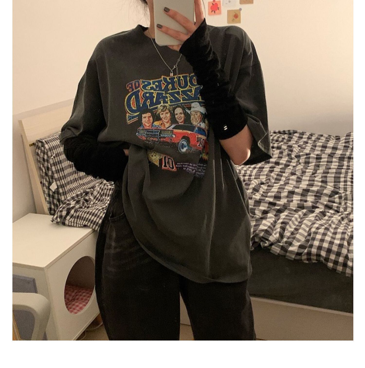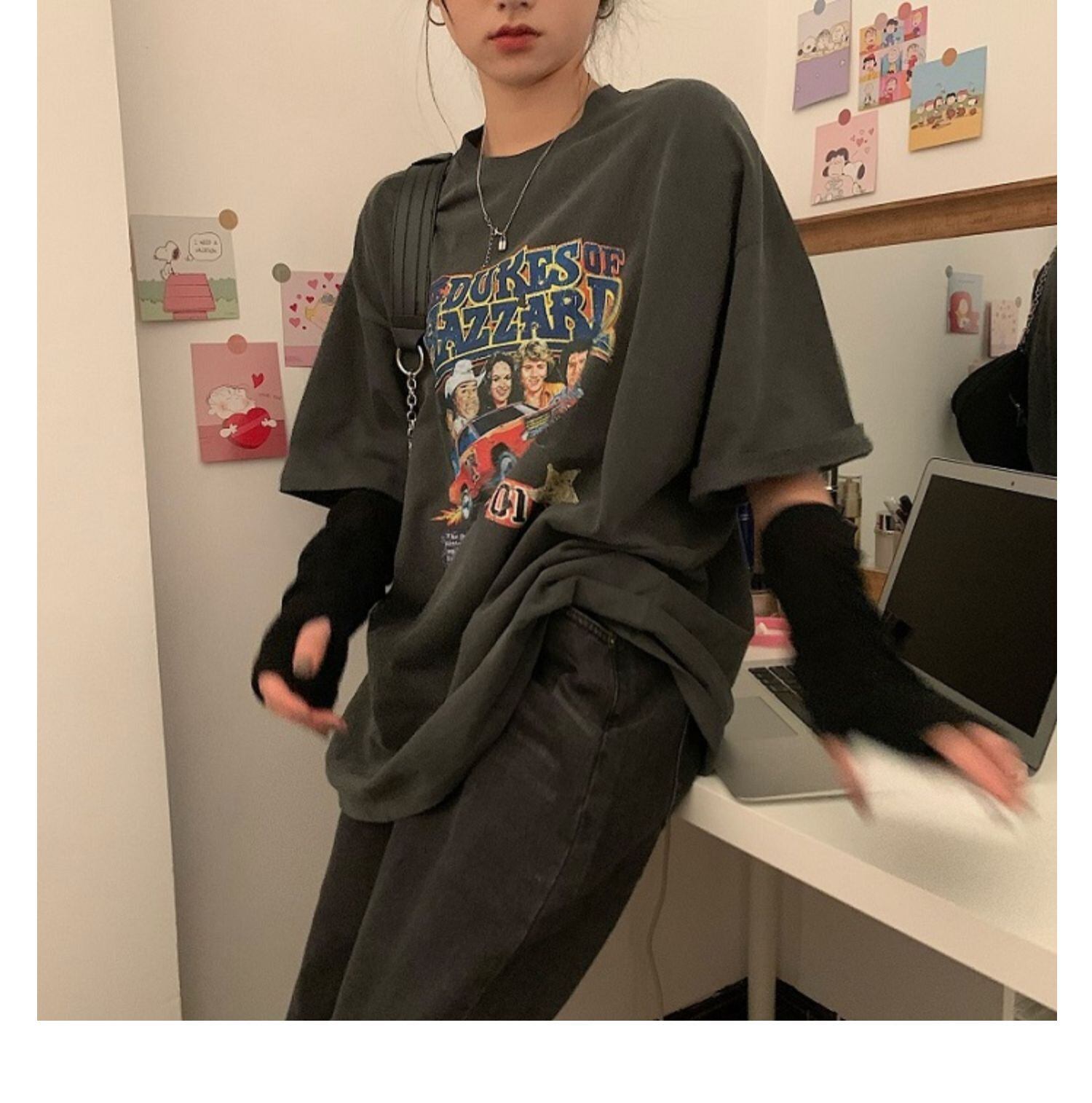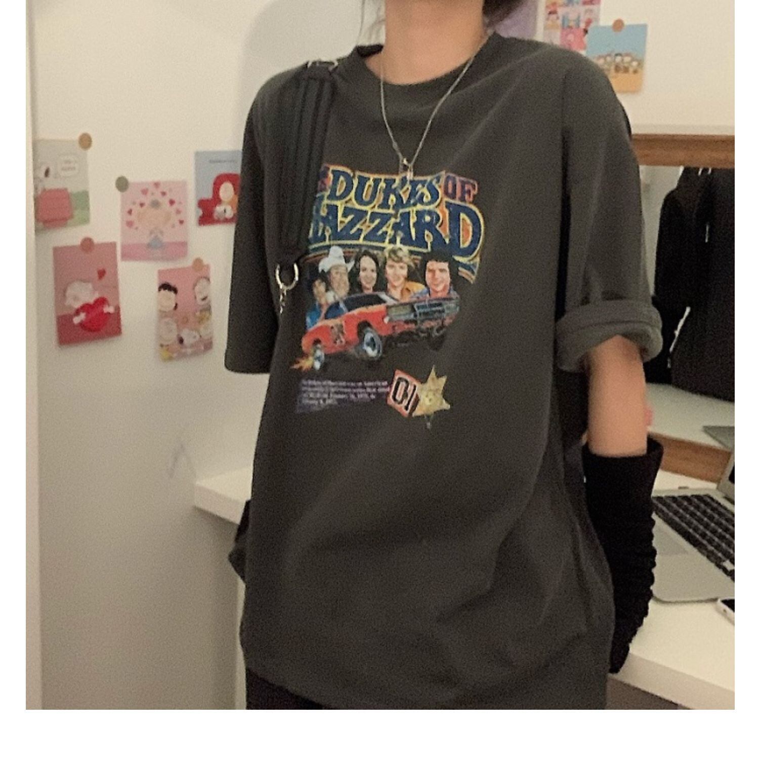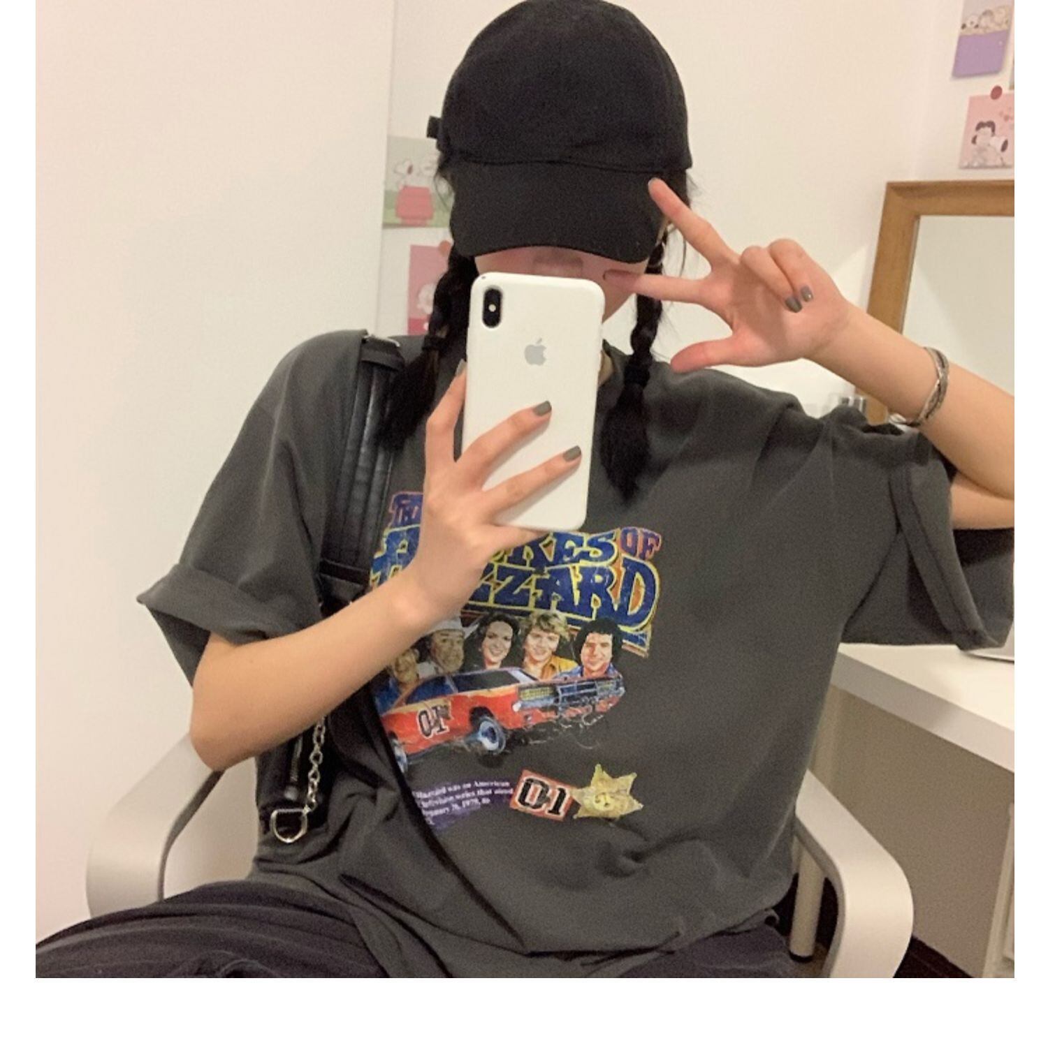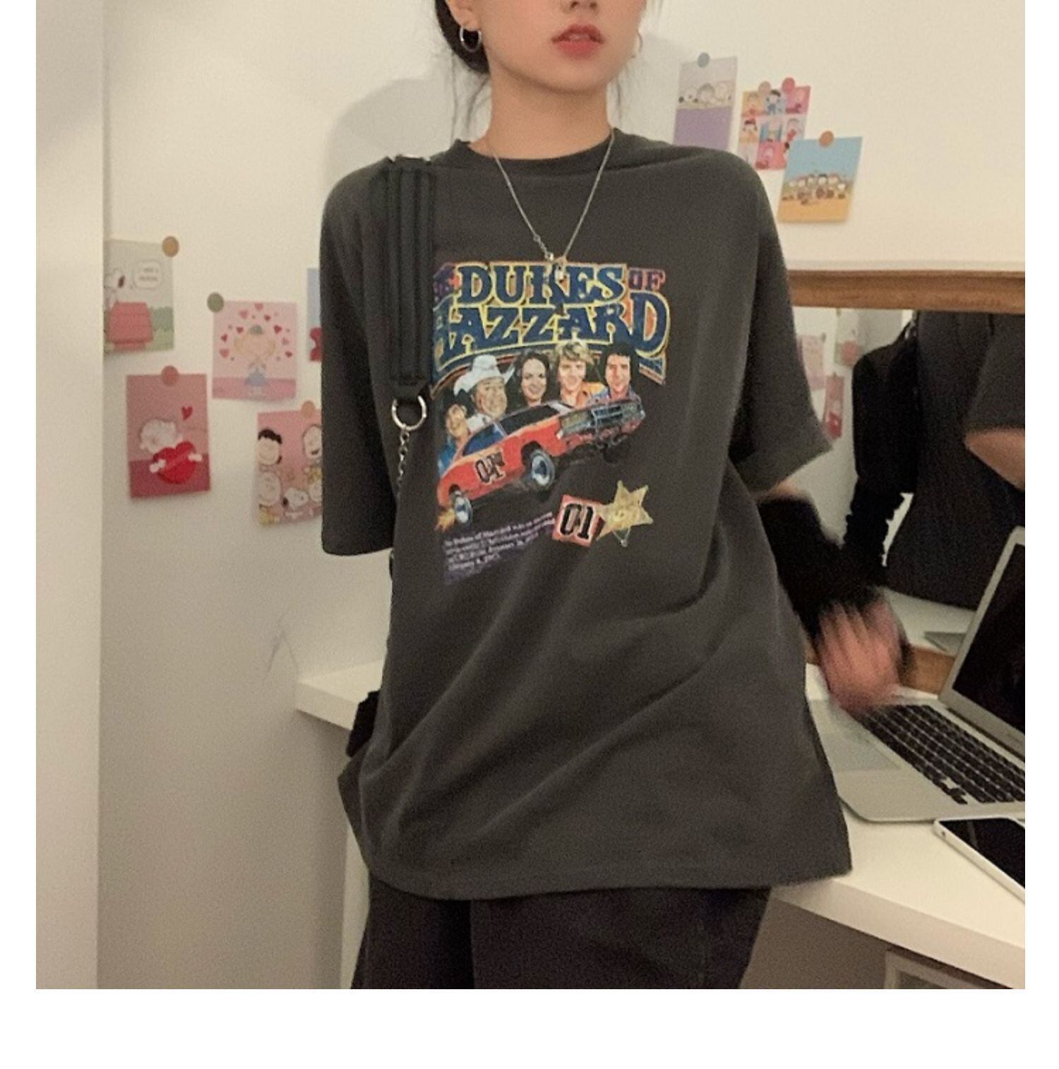 サマースタンダードプリントルーズ半袖スリーブTシャツ トップス ショート レトロ ハーフスリーブ 夏物 ドラファッションホール20621233550