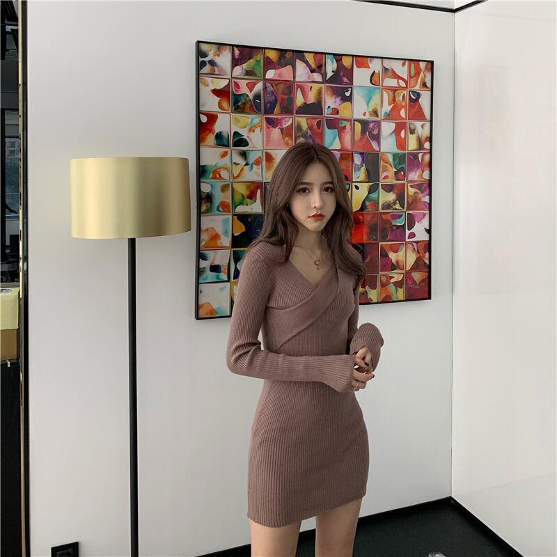 スタイルVネックウェストニットドレス スカート ロング オータム 秋物 ウィンター 冬物 ドラファッションホール72257537704