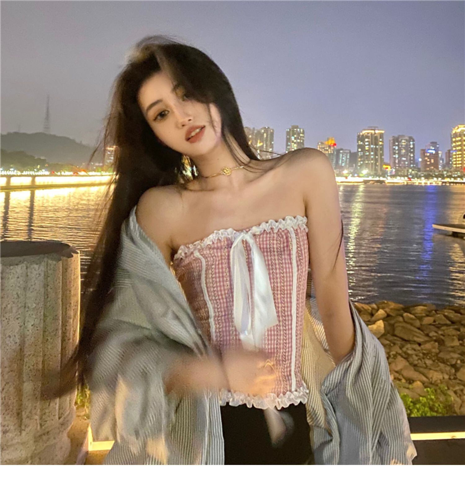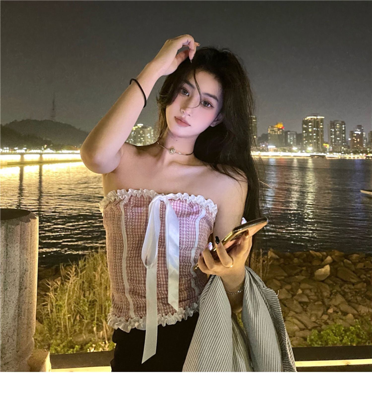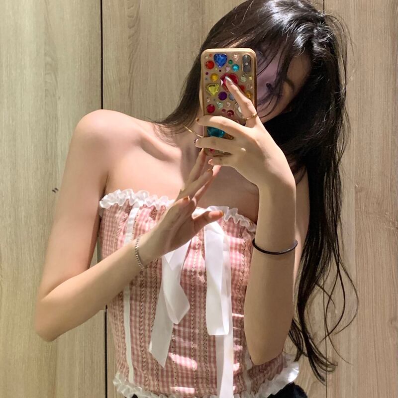 ブラウス パウダーサマースタイルリボンショートトップス 大人ガーリー スウィート キュート カジュアル 夏物 ドラファッションホール17556448302