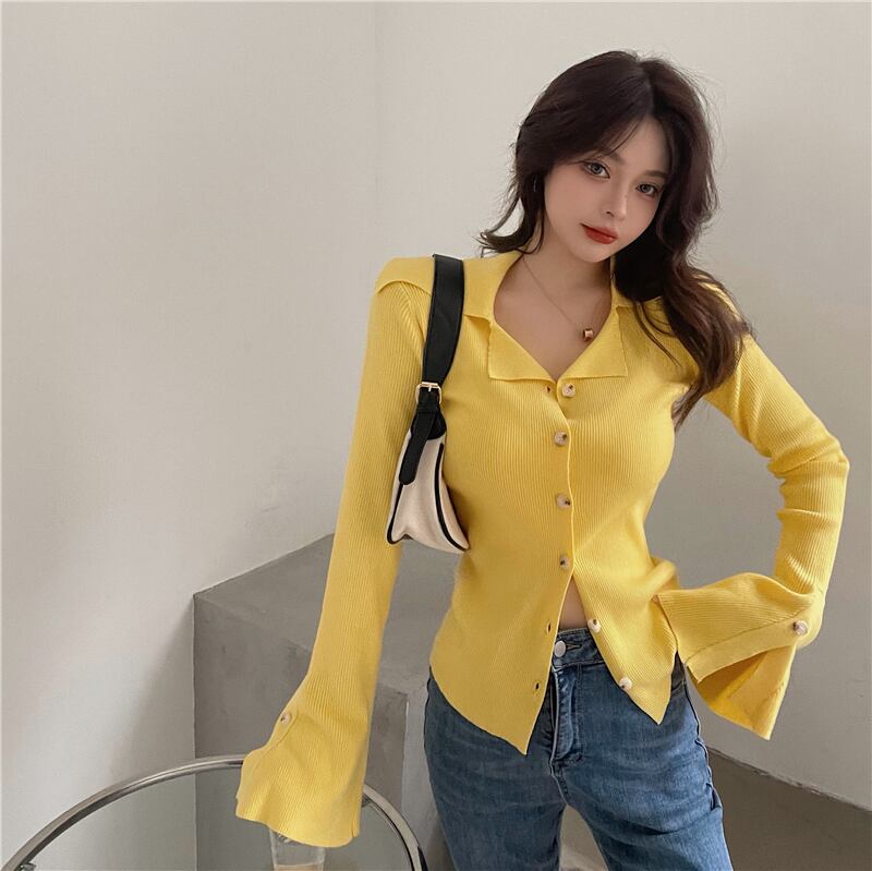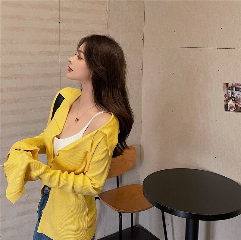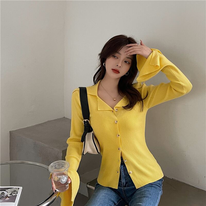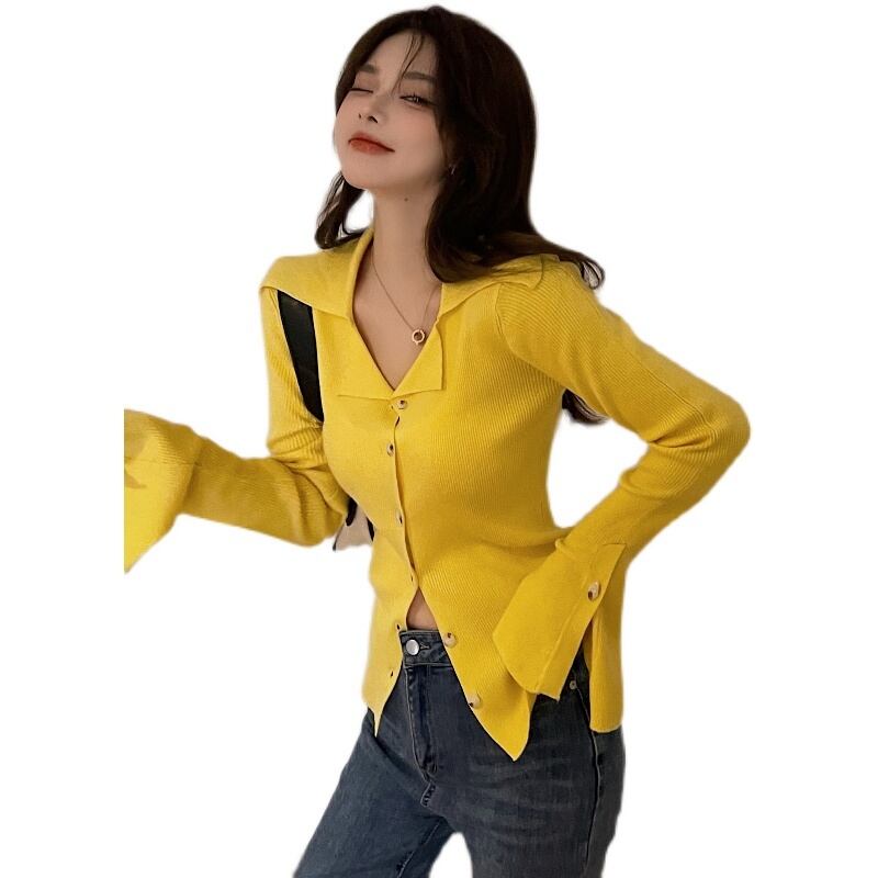 ニットカーディガンジャケット レディーススプリングソリッド カラースリムスリーブ 春物 ソリッドカラー ドラファッションホール19041731070