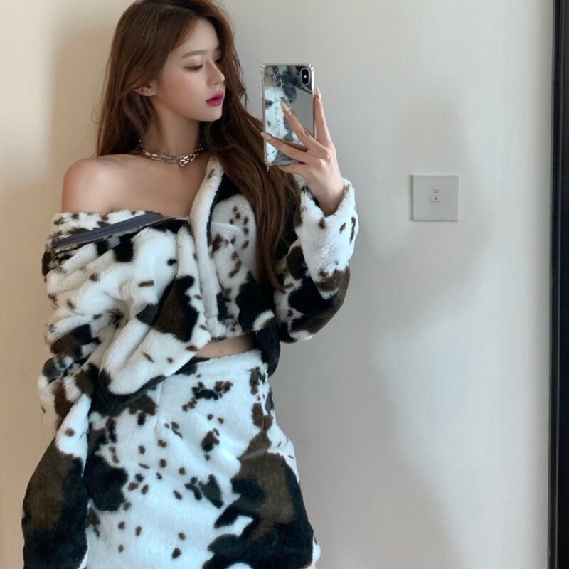 スタイルベルベットカラージッパーカーディガンジャケット ハイウェストウェストスカート ドラファッションホール4935478724