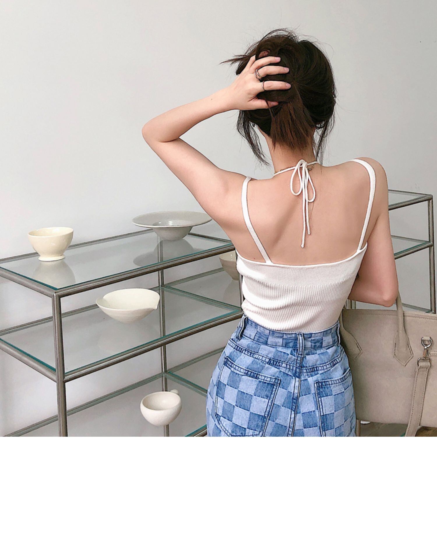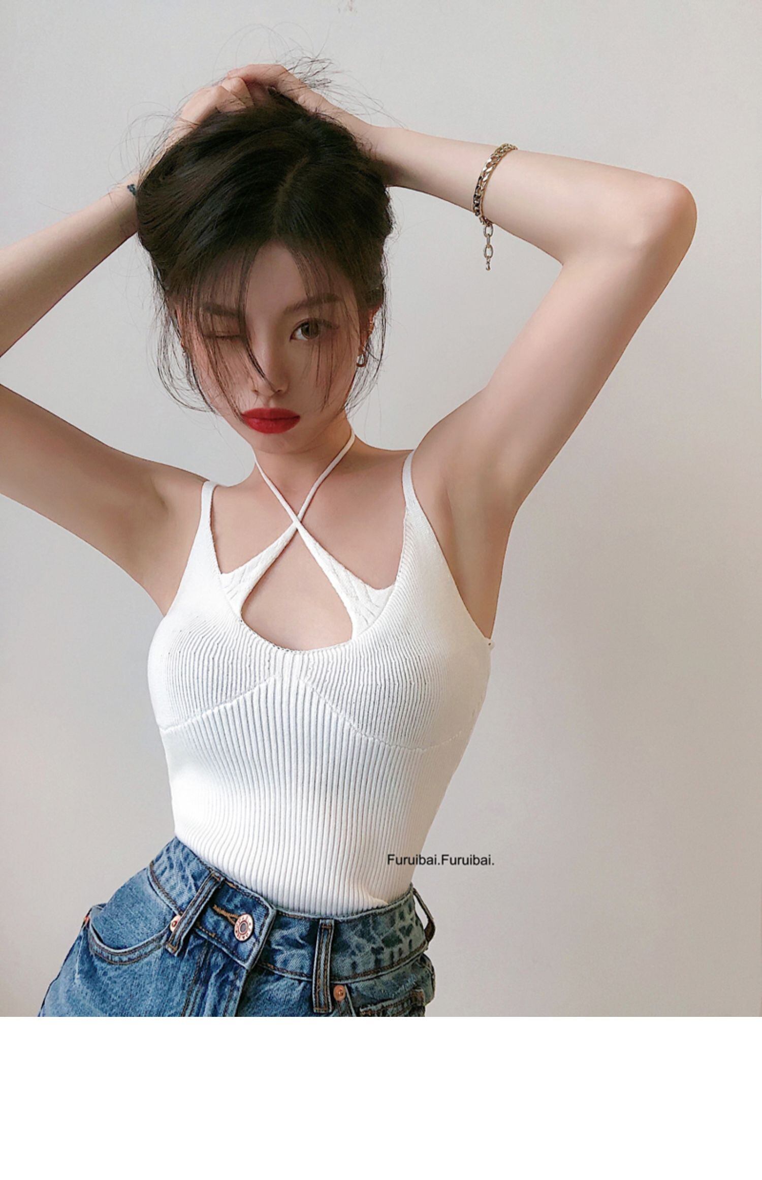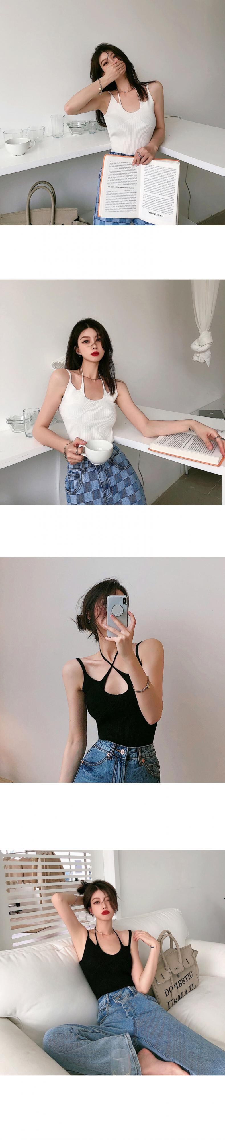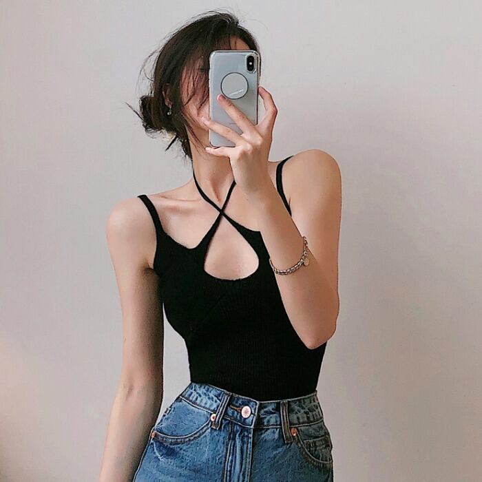 サマークロスストレッチホルタートップス ニットレディース エラスティック 伸縮 夏物 ドラファッションホール54491178042