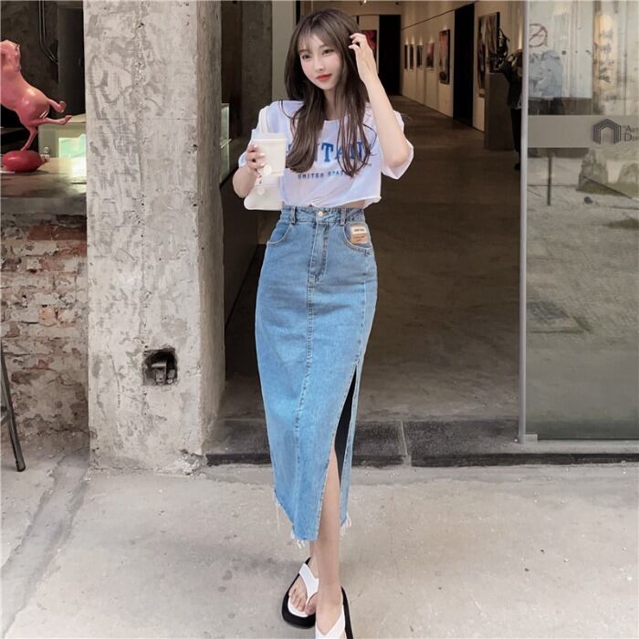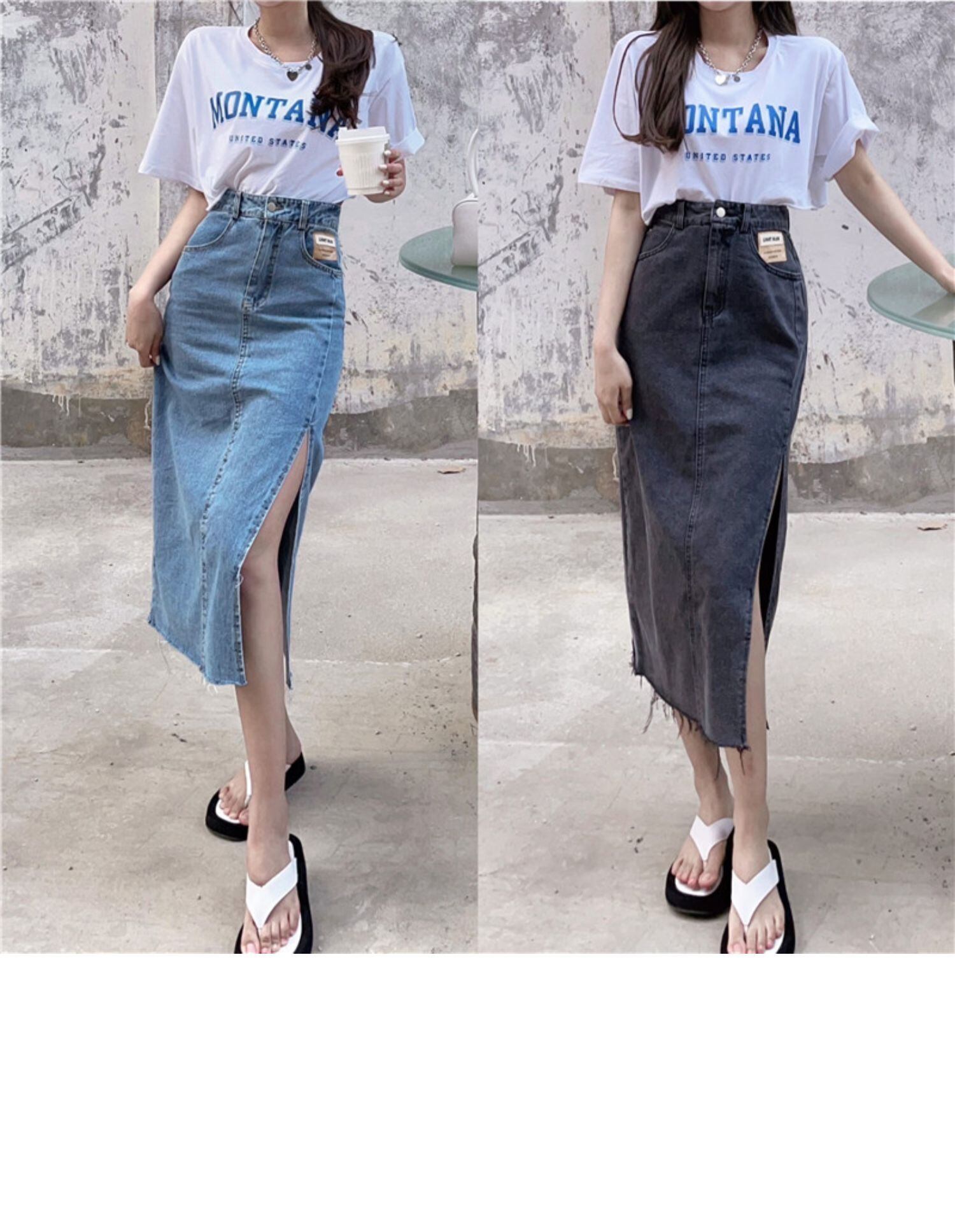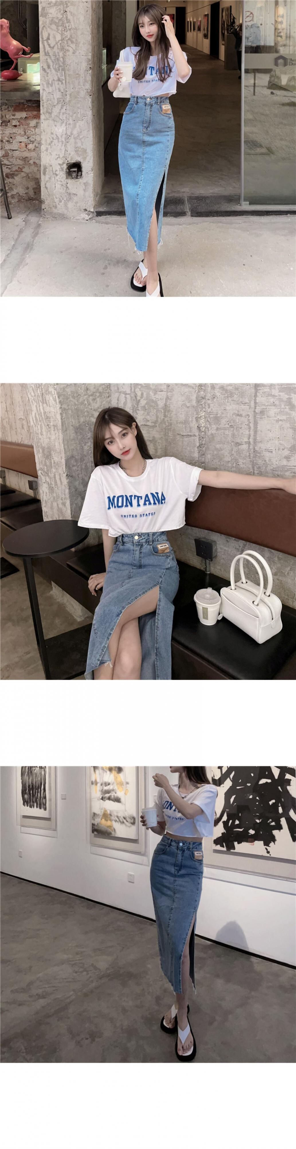 色:レター半袖,デニムブルースカート,デニムブラックスカート