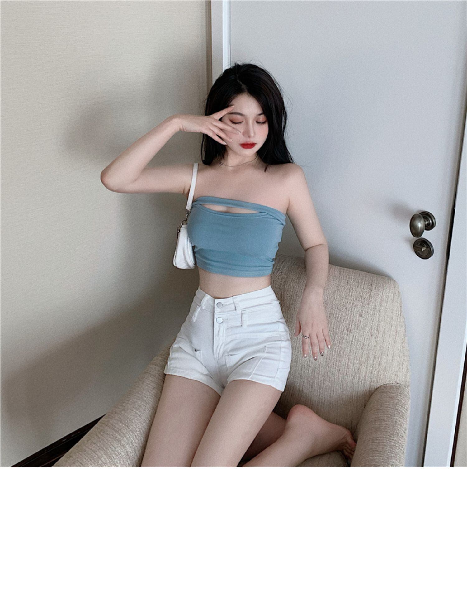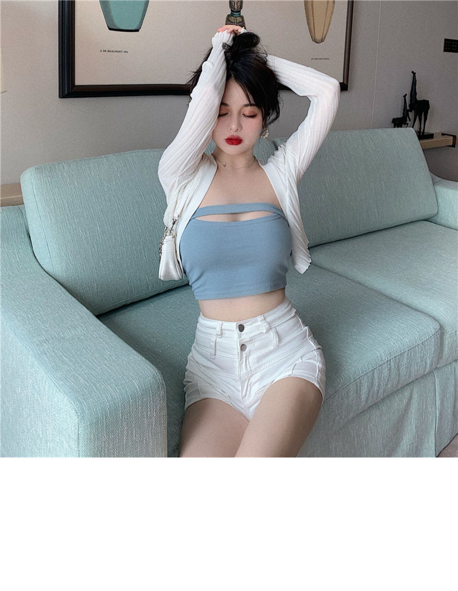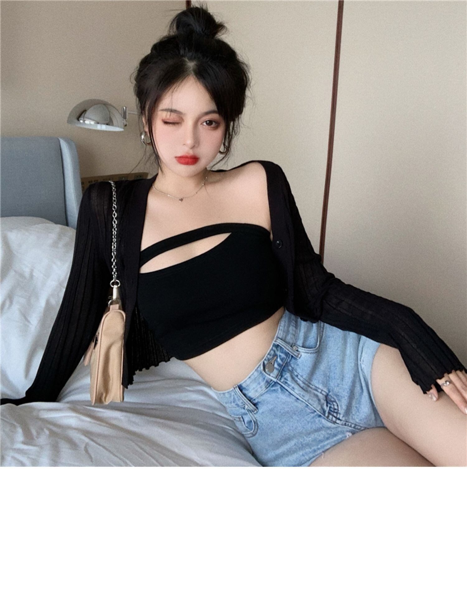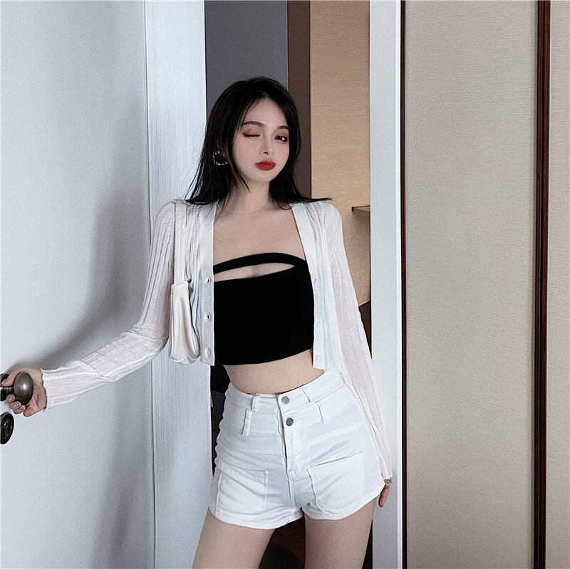 色:白いカーディガン,ブラックカーディガン,黒いチューブトップ,青いチューブトップ