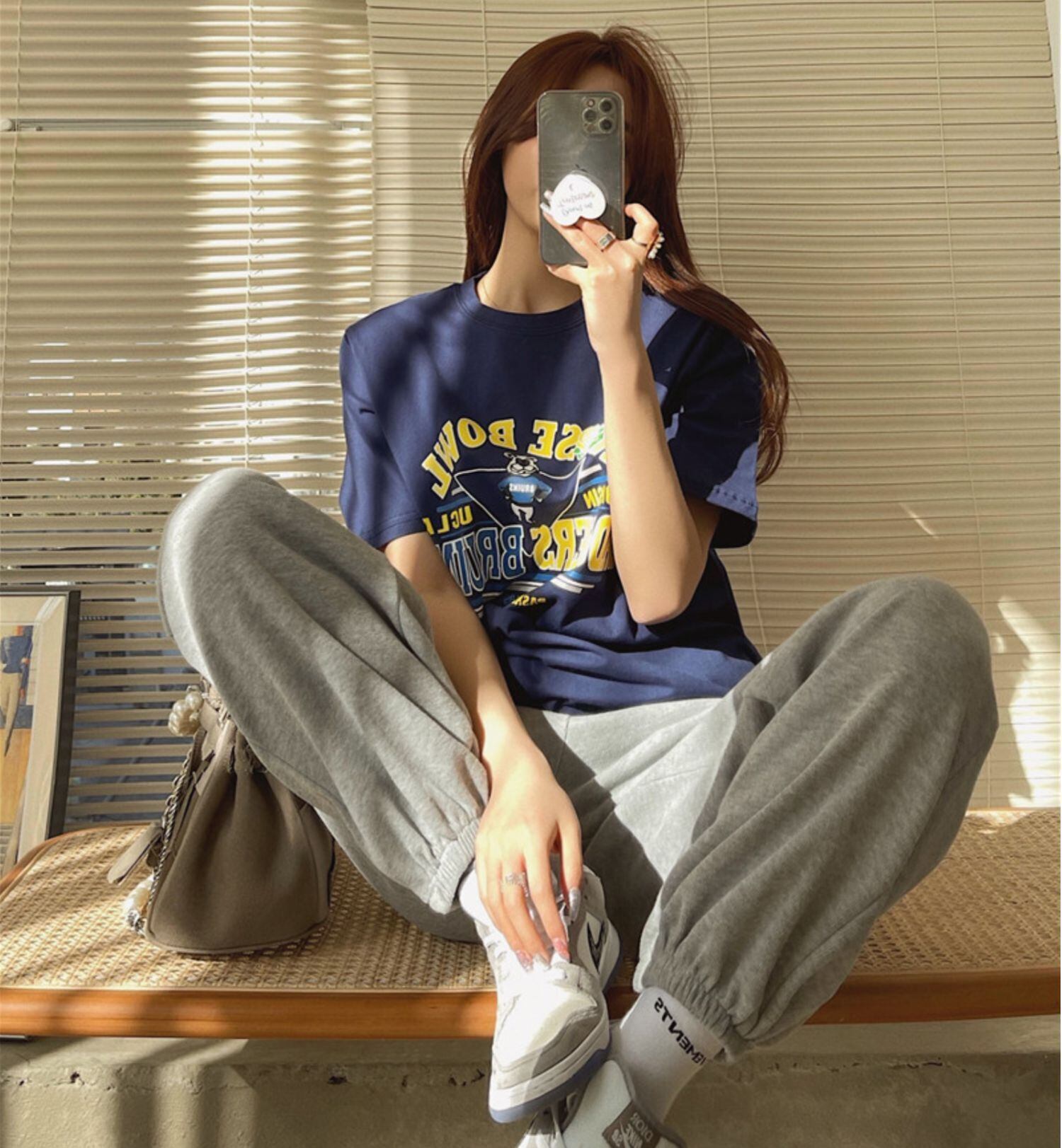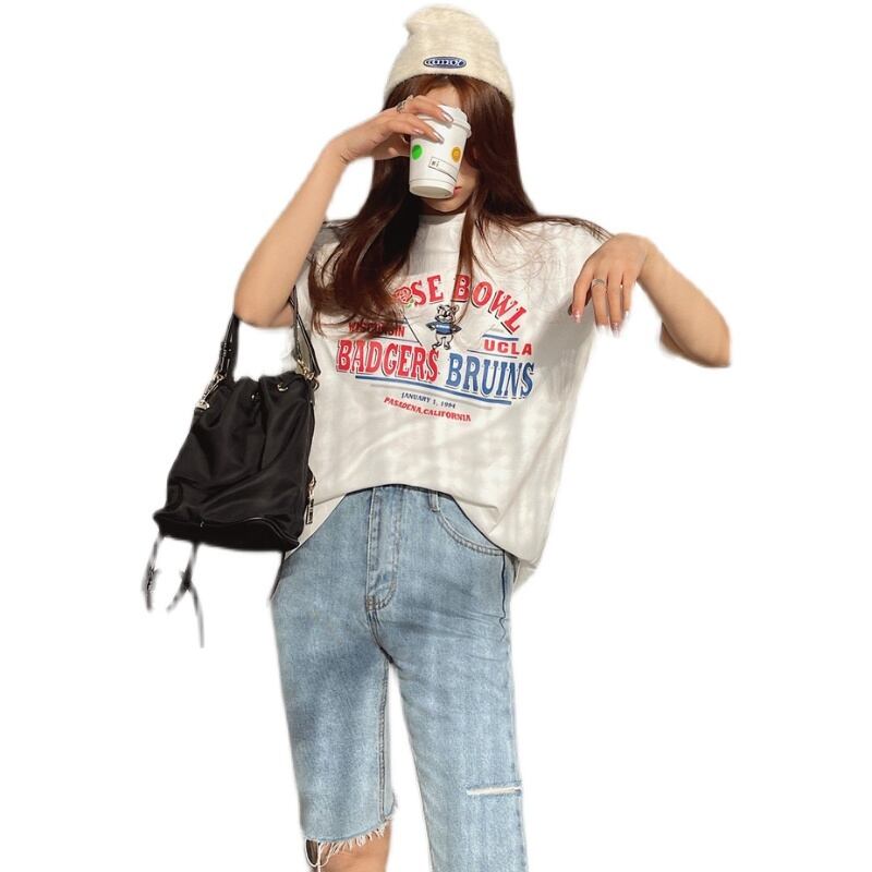 プリント柄Tシャツ ルーズラウンドネック薄手トップス サマーカジュアル 夏物 Oネック ドラファッションホール35947898722