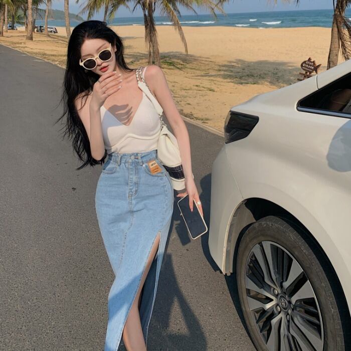 スリムハイウェストウェストAラインスカート サマー 夏物 ドラファッションホール55919378569