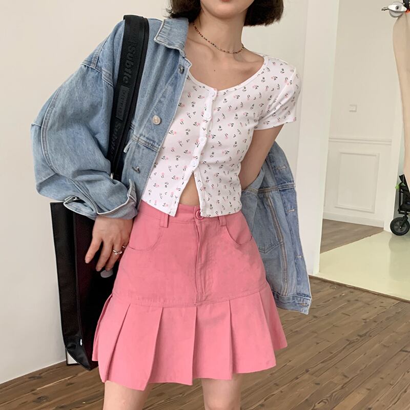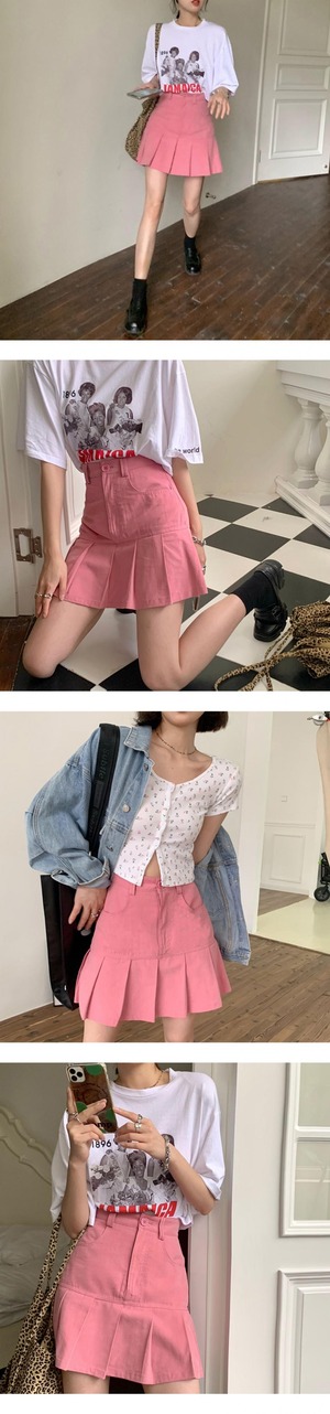 プリーツAラインスカート サマーソリッド カラー薄手ショート 夏物 ソリッドカラー ドラファッションホール79049472738