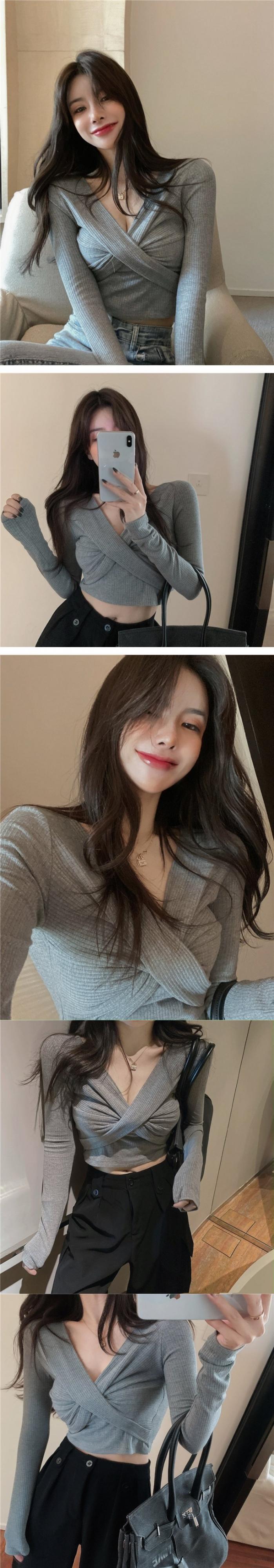 オータムウィンタースリムTシャツ ソリッド カラーカジュアルトップス ロング 秋物 冬物 ソリッドカラー ドラファッションホール67369284243