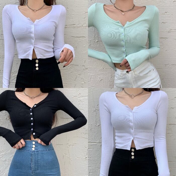 スプリングスリムシャツ ショートクロップドレッドTシャツ カーディガントップス レディース ロング 春物 ドラファッションホール47000579344
