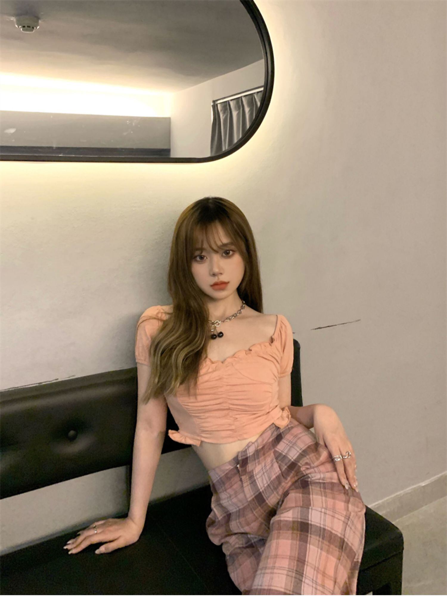 色:ピンクT,ピンクのチェック柄パンツ