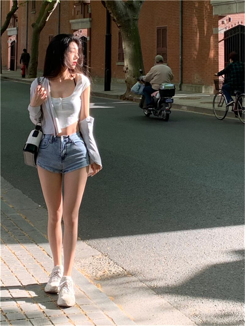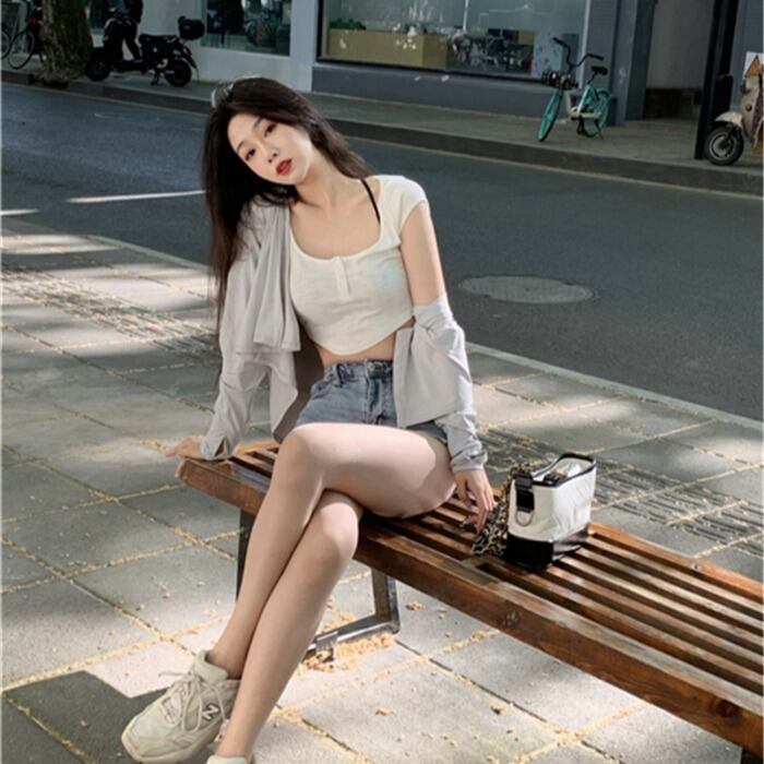 色:ホワイトトップ,ライトブルーデニムショーツ
