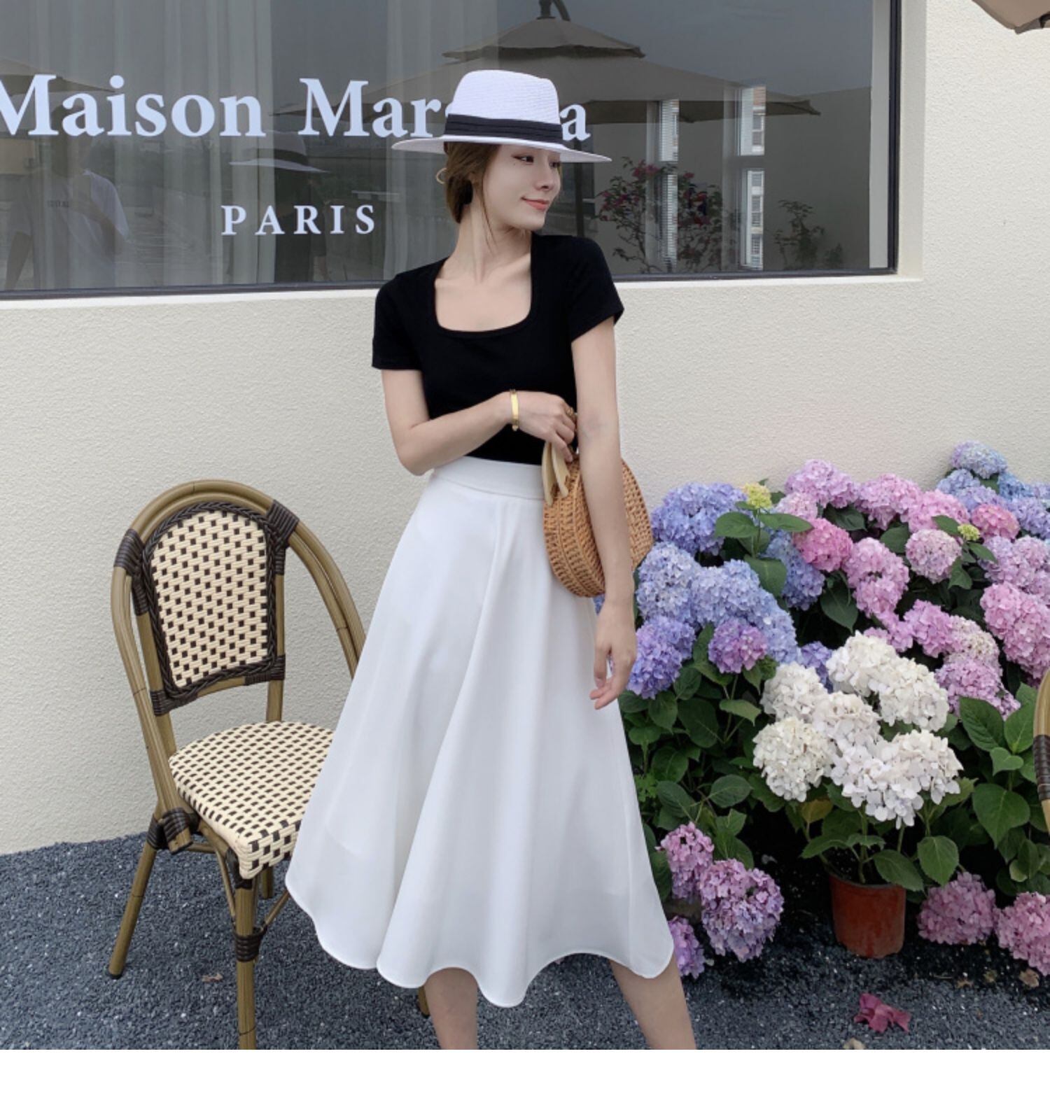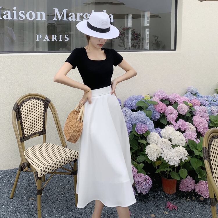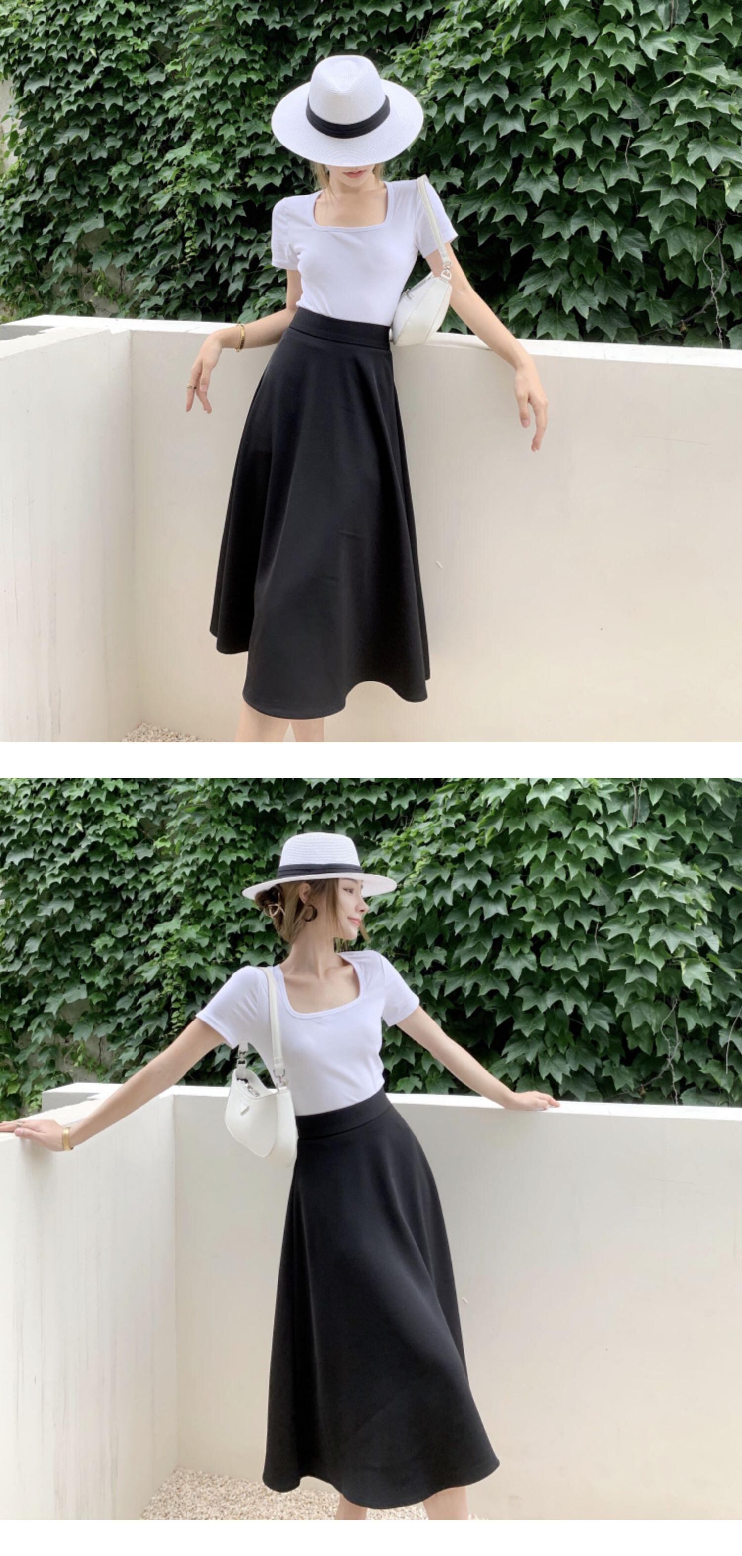 カラーソリッド Tシャツ ハイウェストウェストAラインスカート ソリッドカラー スクウェア ドラファッションホール42059653551