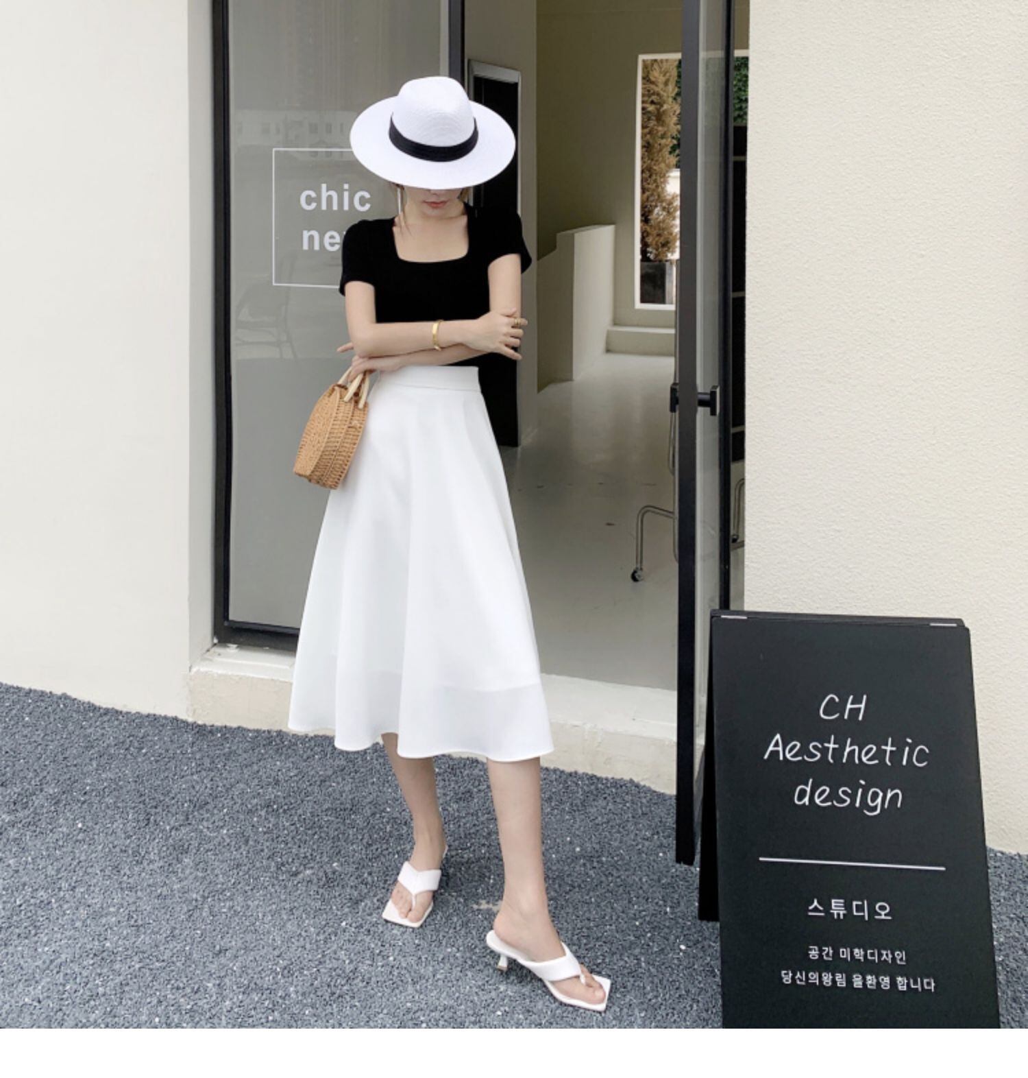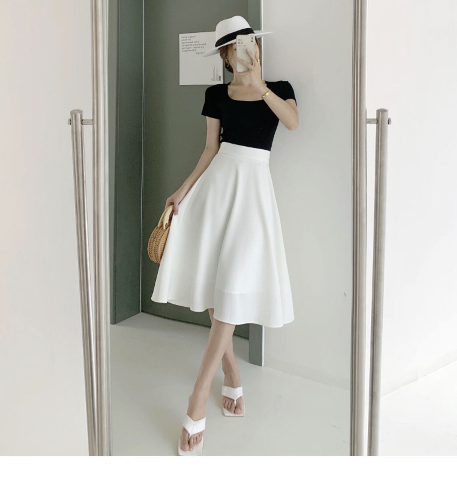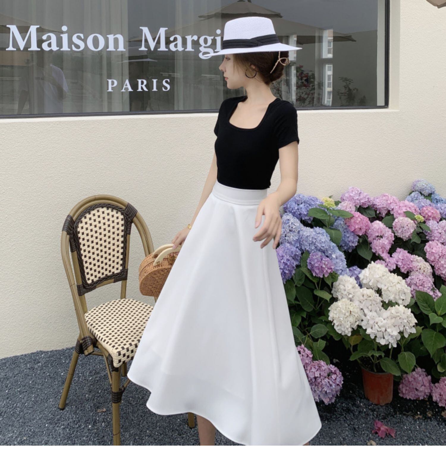 カラーソリッド Tシャツ ハイウェストウェストAラインスカート ソリッドカラー スクウェア ドラファッションホール42059653551