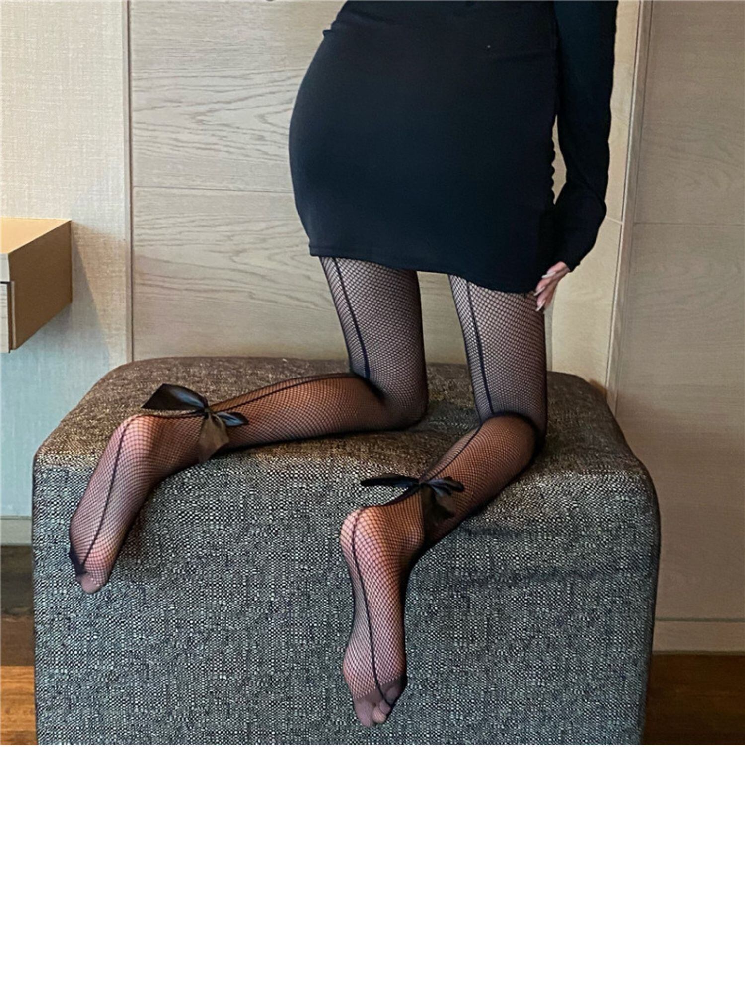 スプリングサマーリボンブラックレッドストッキング 薄手ネットソックス レディース 春物 夏物 タイツ ドラファッションホール2301864175
