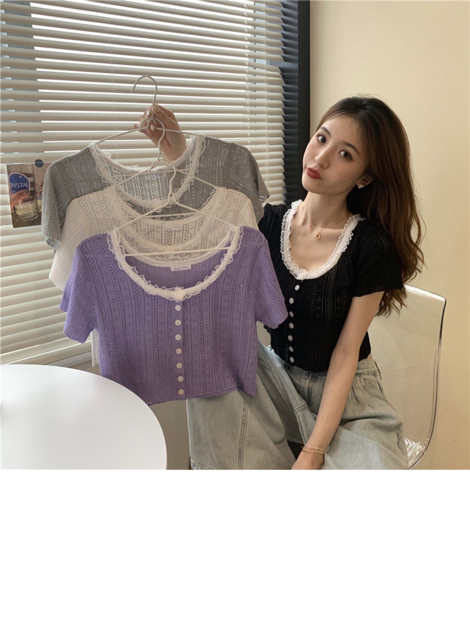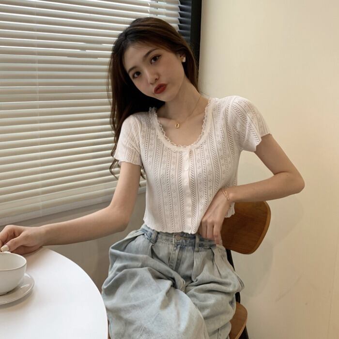 レースショートニットトップス サマー 夏物 ステッチ ドラファッションホール15155466438