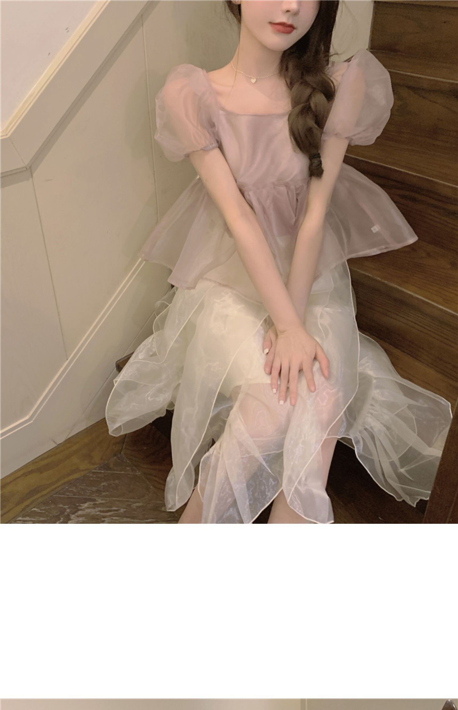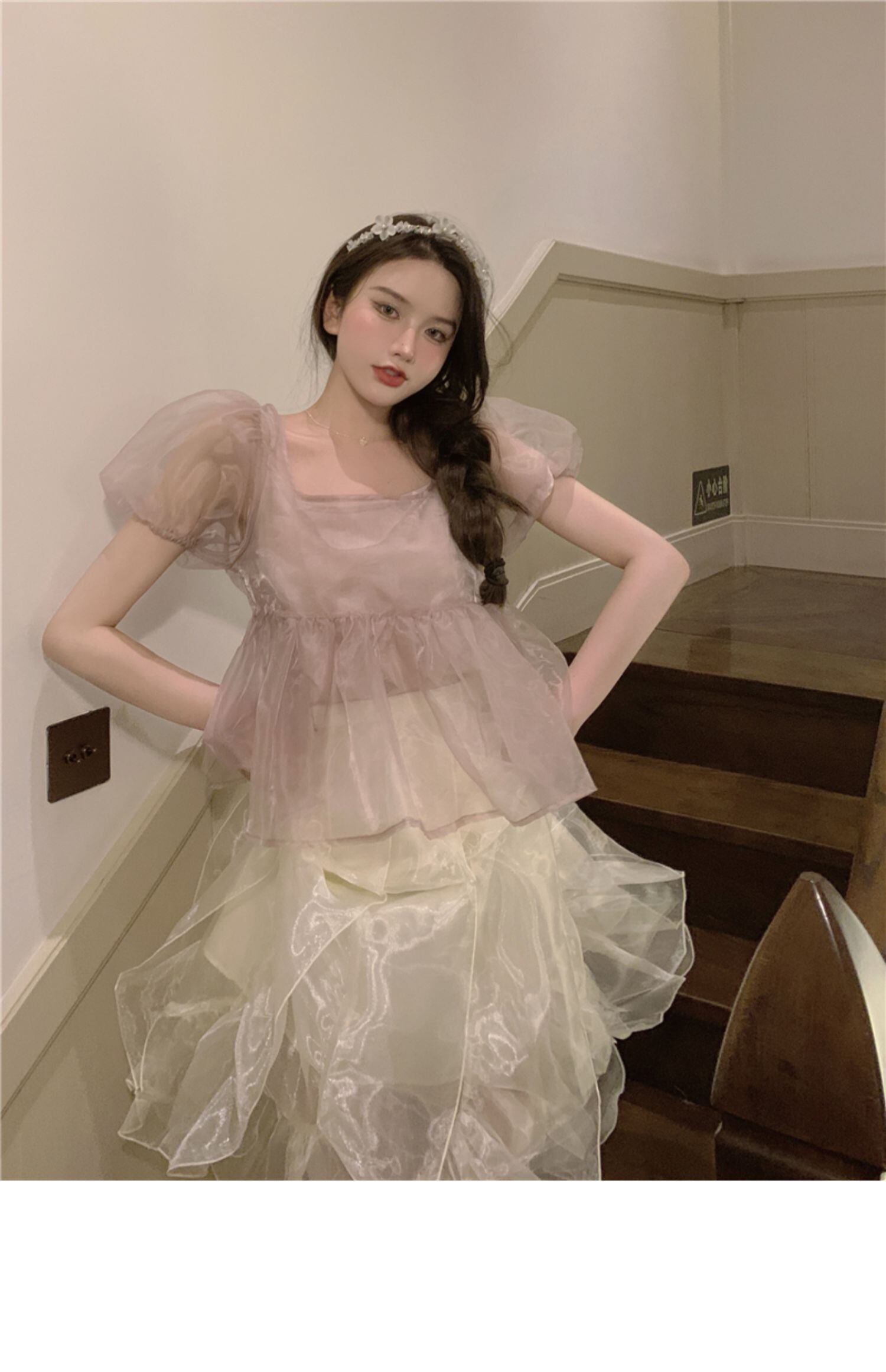 色:パフスリーブトップ(サスペンダー付き),蝉の羽のスカート