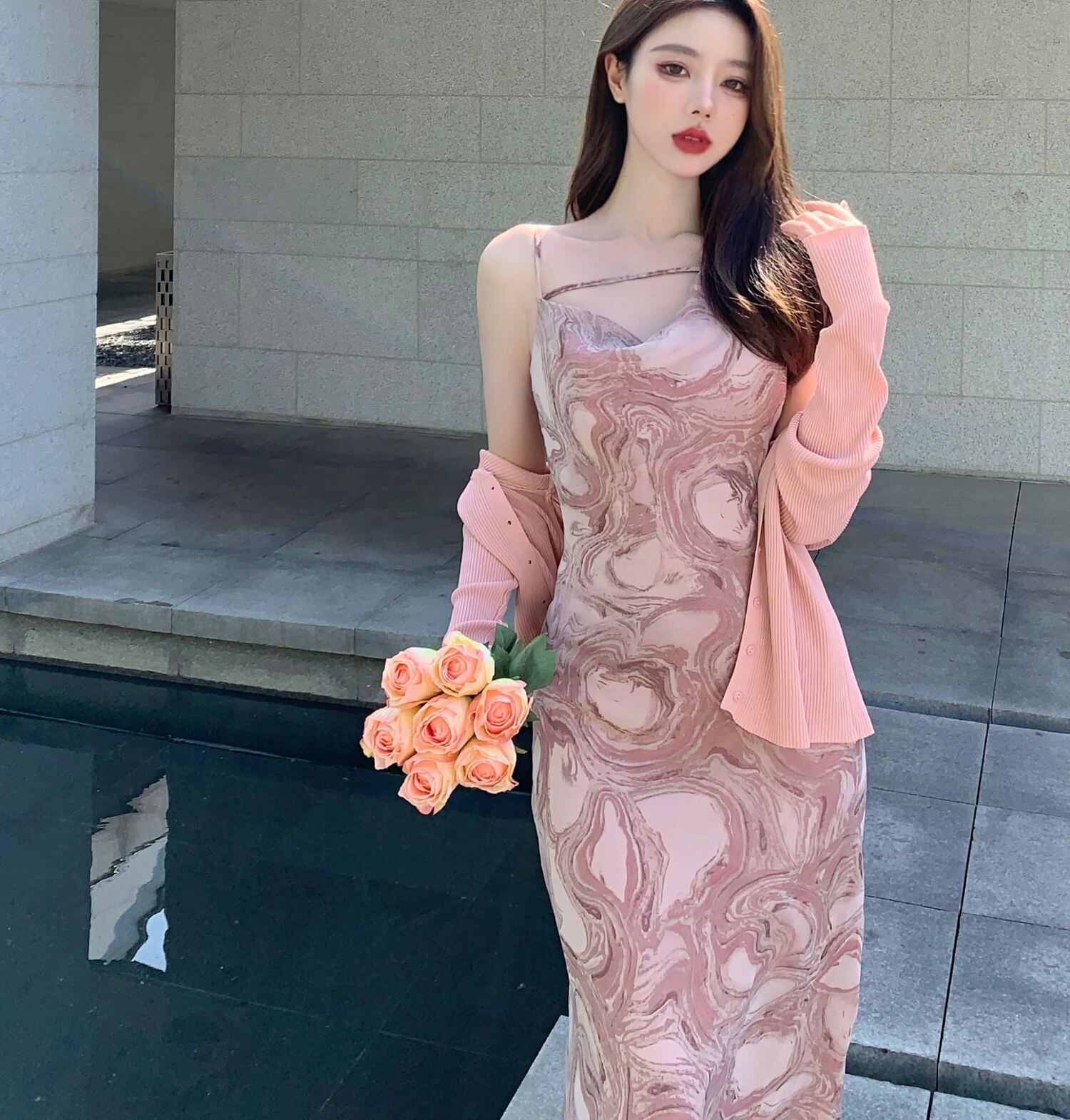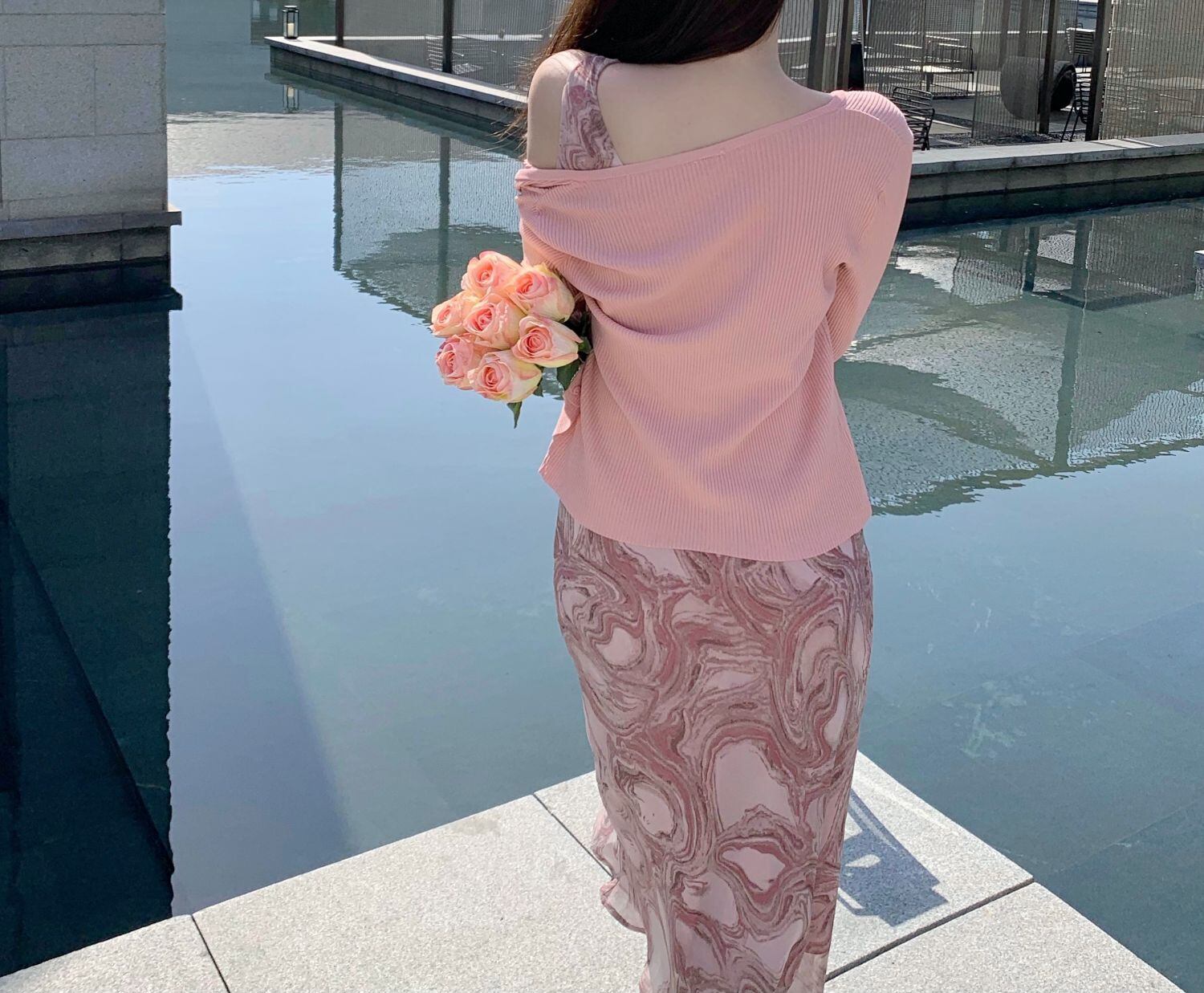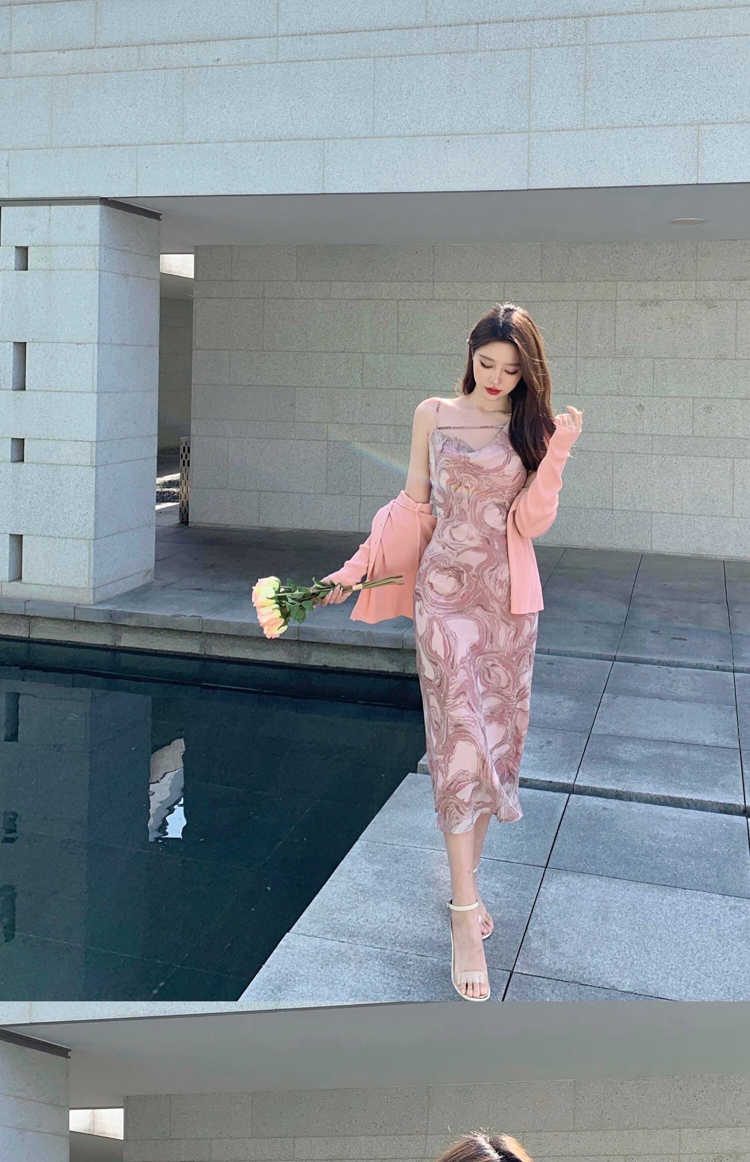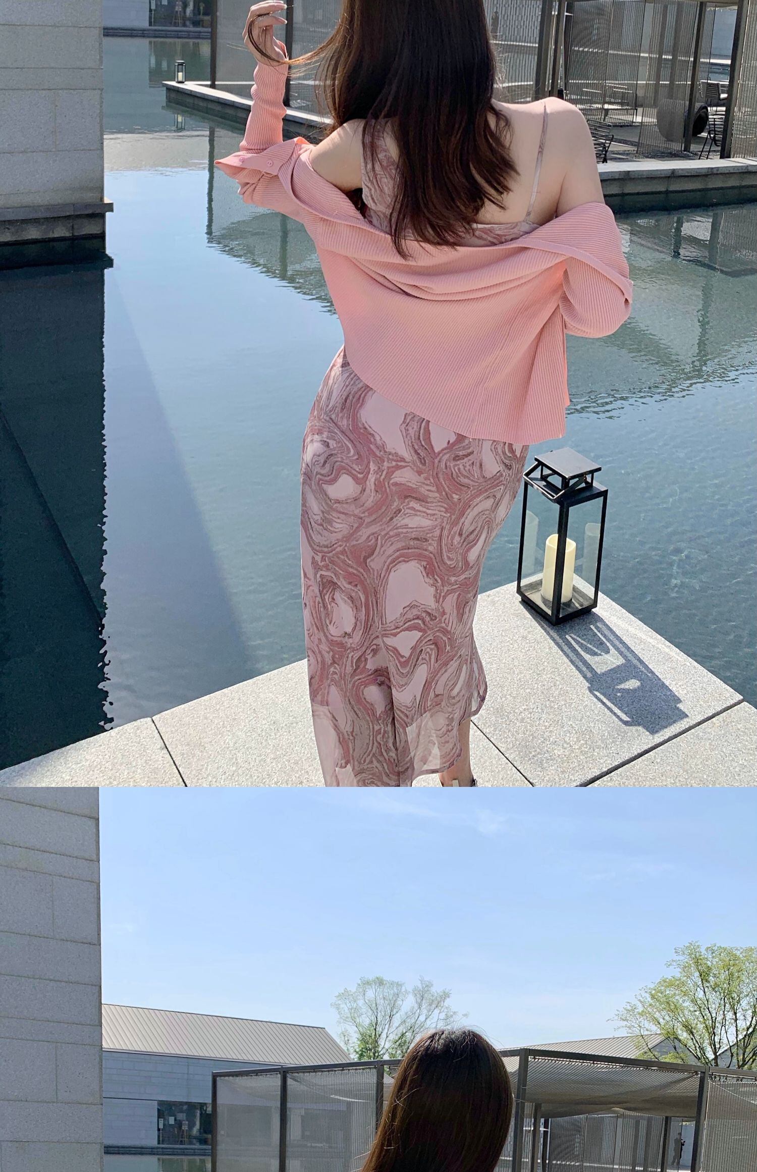 ダークパウダープリントホワイトカラーシフォンスカート カーディガン シルク ドラファッションホール40792056065