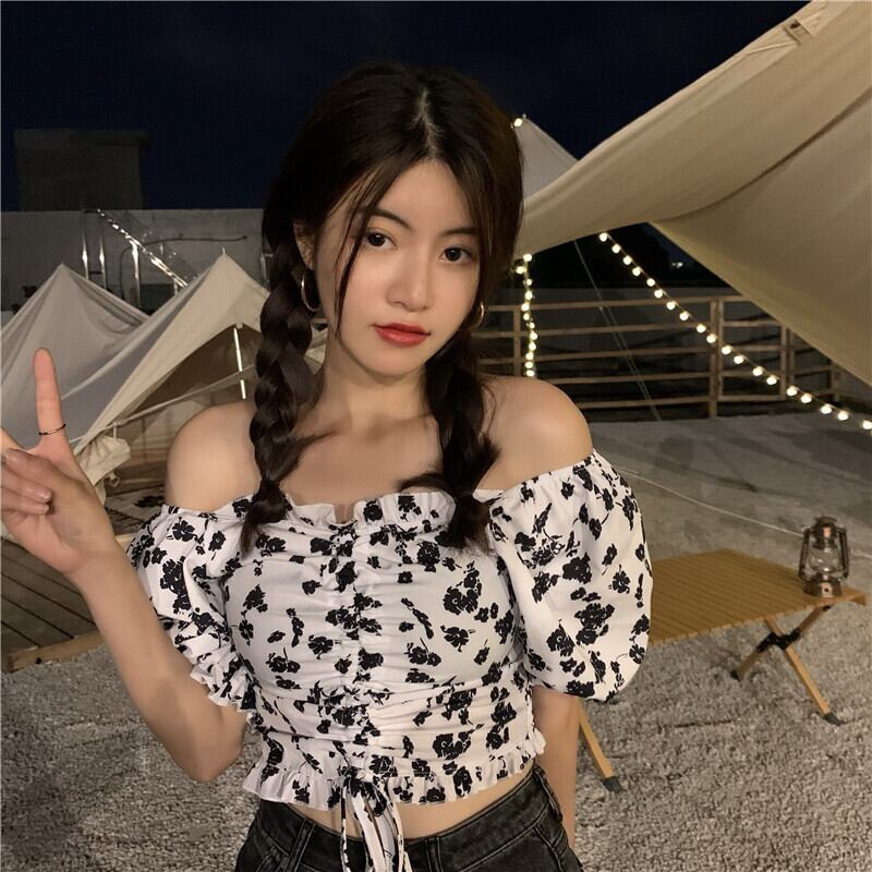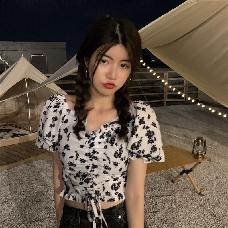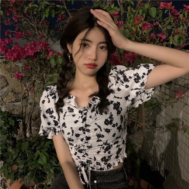 スリーブ半袖トップス フローラルギャザーシャツ ショート ハーフスリーブ 花柄 ドラファッションホール7432584044