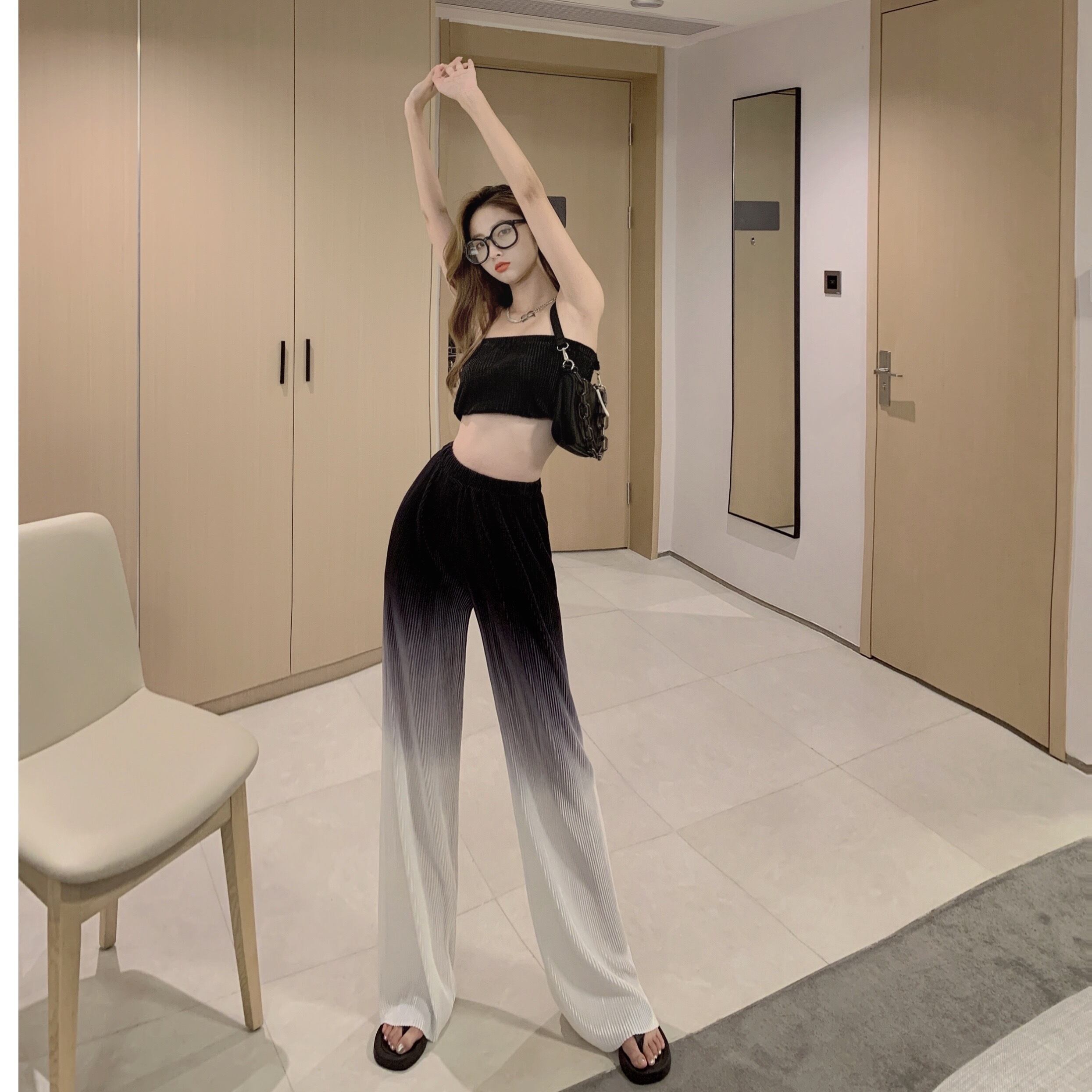 カラーハイウェストウェストワイドレッグパンツ ルーズストラップレストップス カジュアルレディース ワイドパンツ ドラファッションホール16883164507