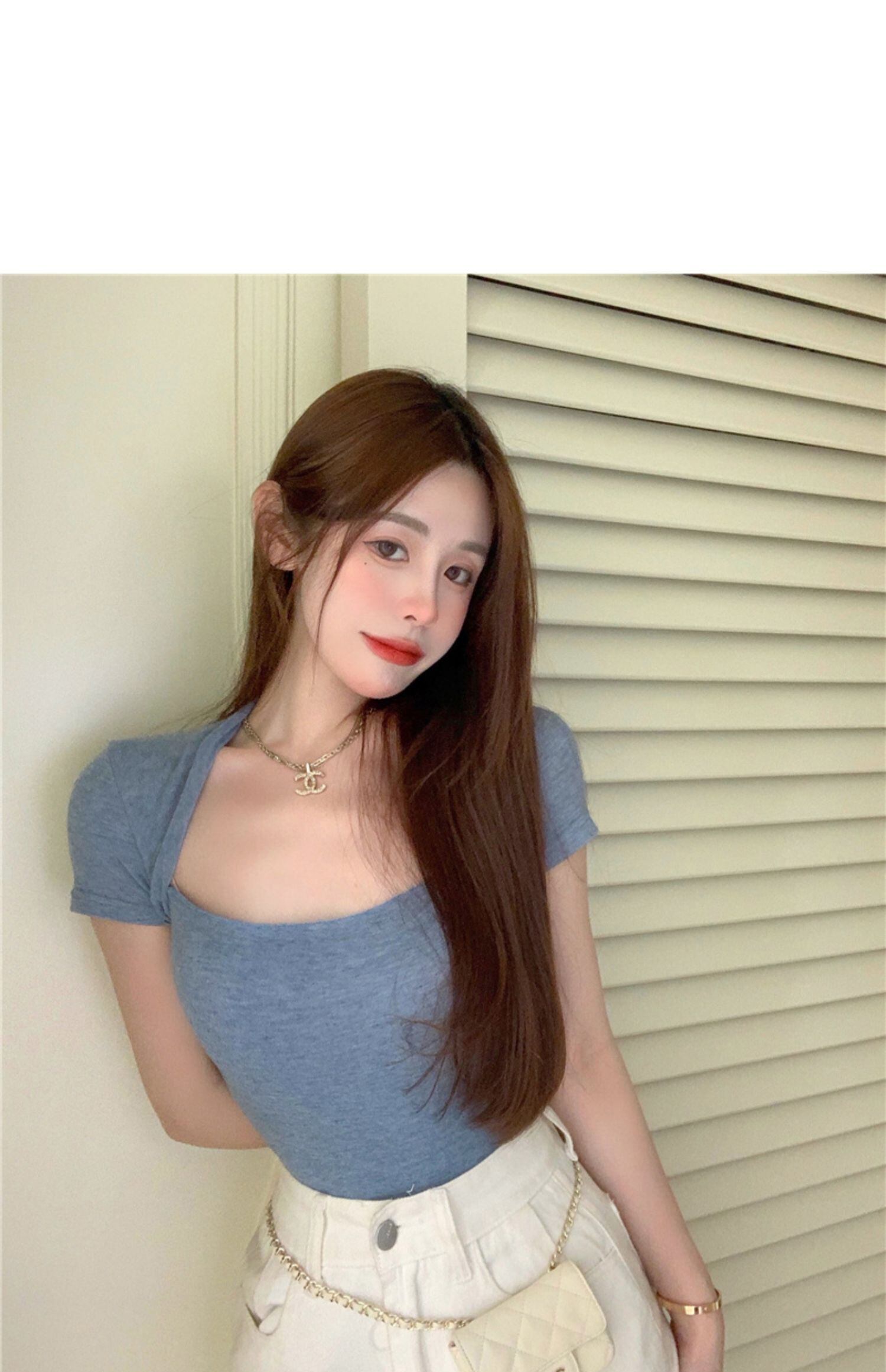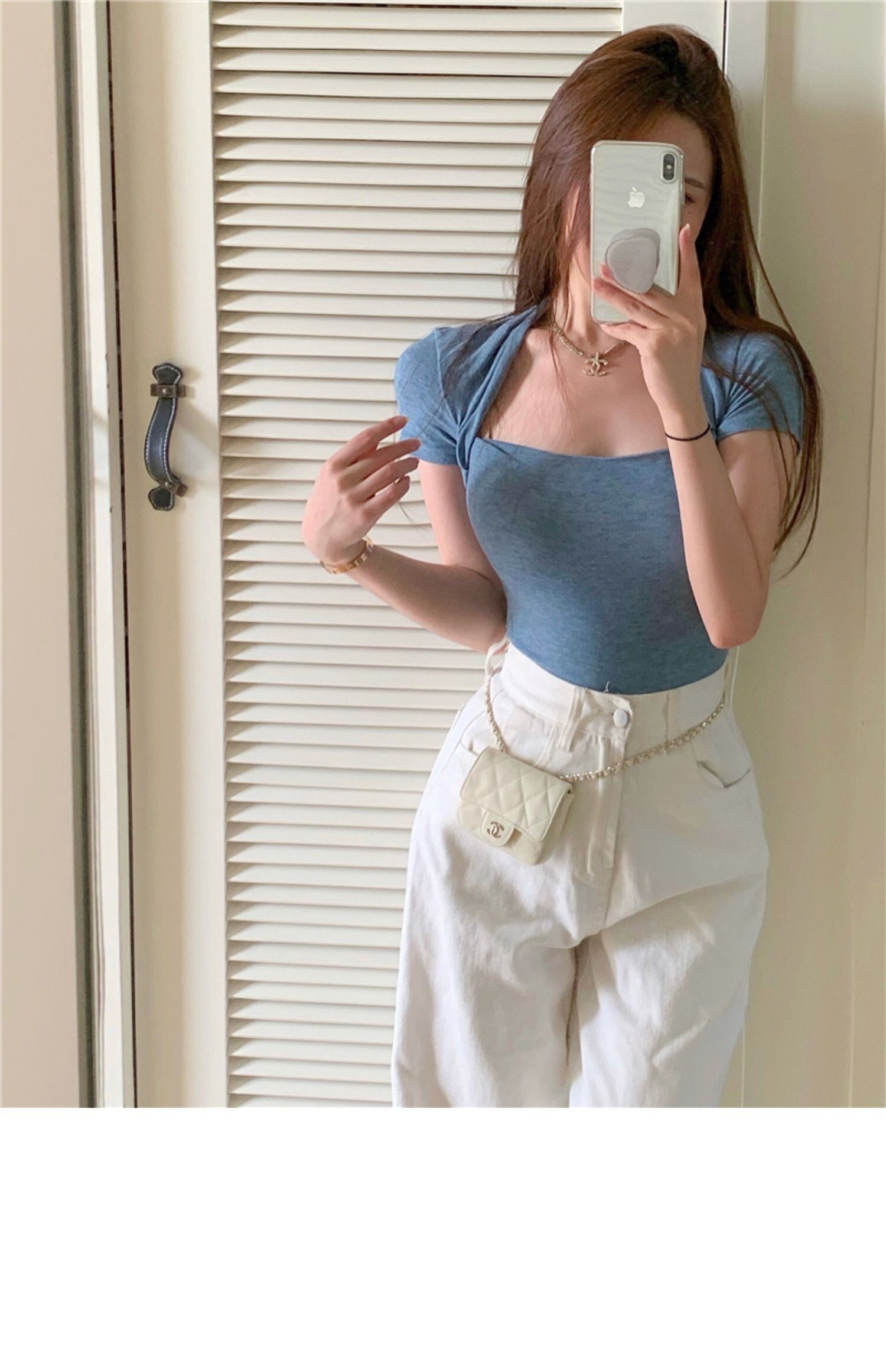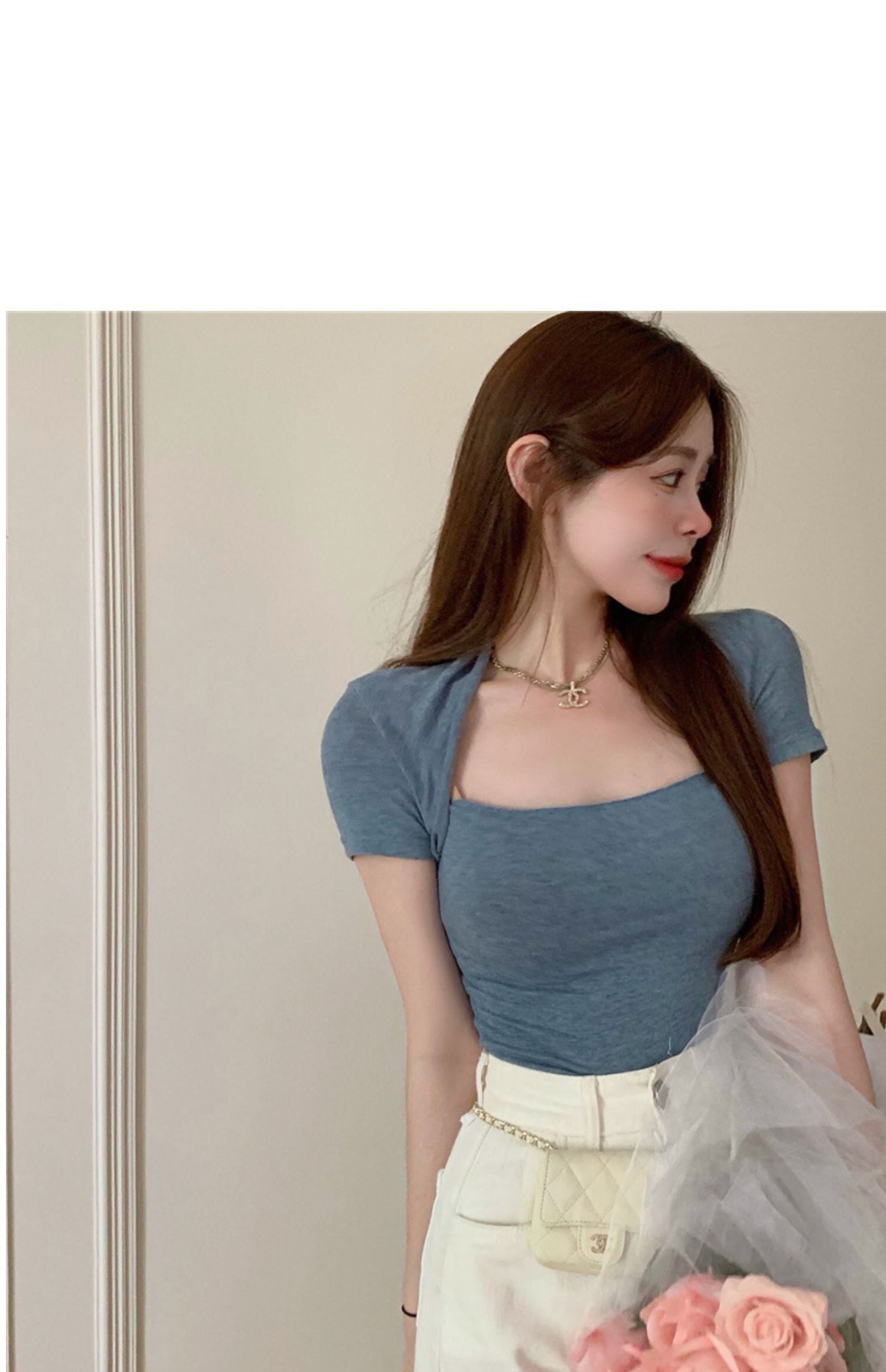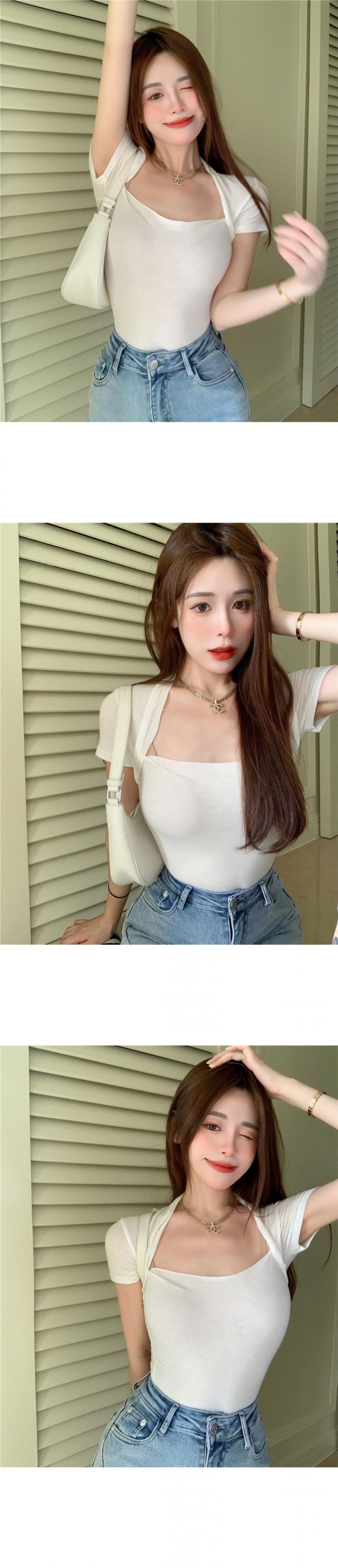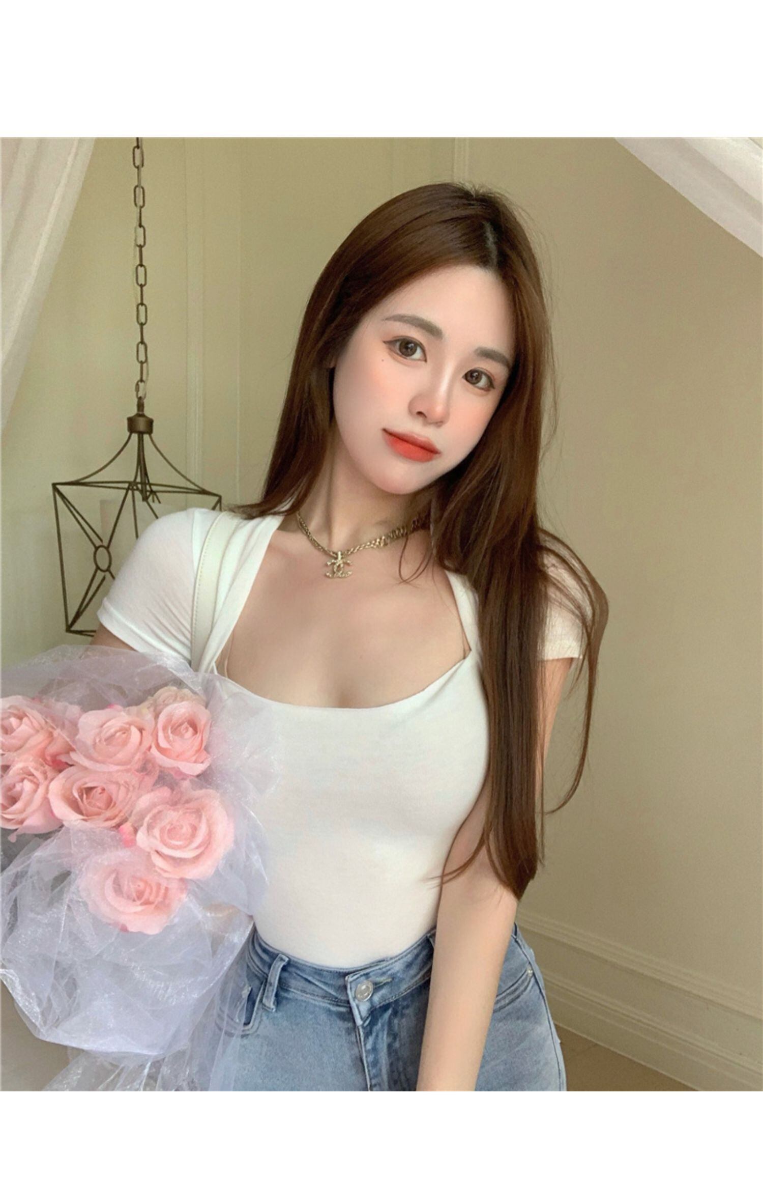 ベーシックショートスリムホワイトトップス レディースサマーブラック半袖スリーブTシャツ シャツ ハーフスリーブ 夏物 スクウェア ドラファッションホール79780482329