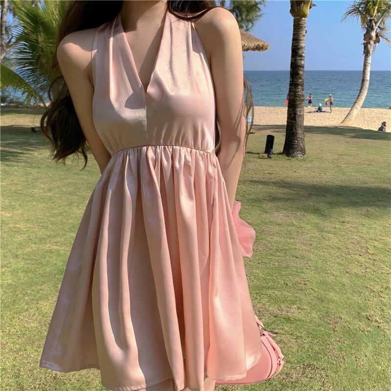 スカート サマースタイルホルターサテンウェストドレス 夏物 ドラファッションホール92976524132