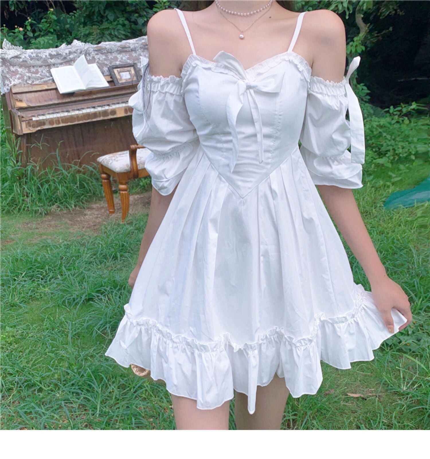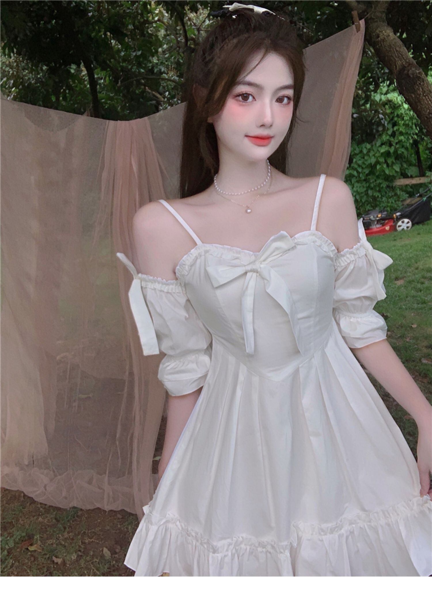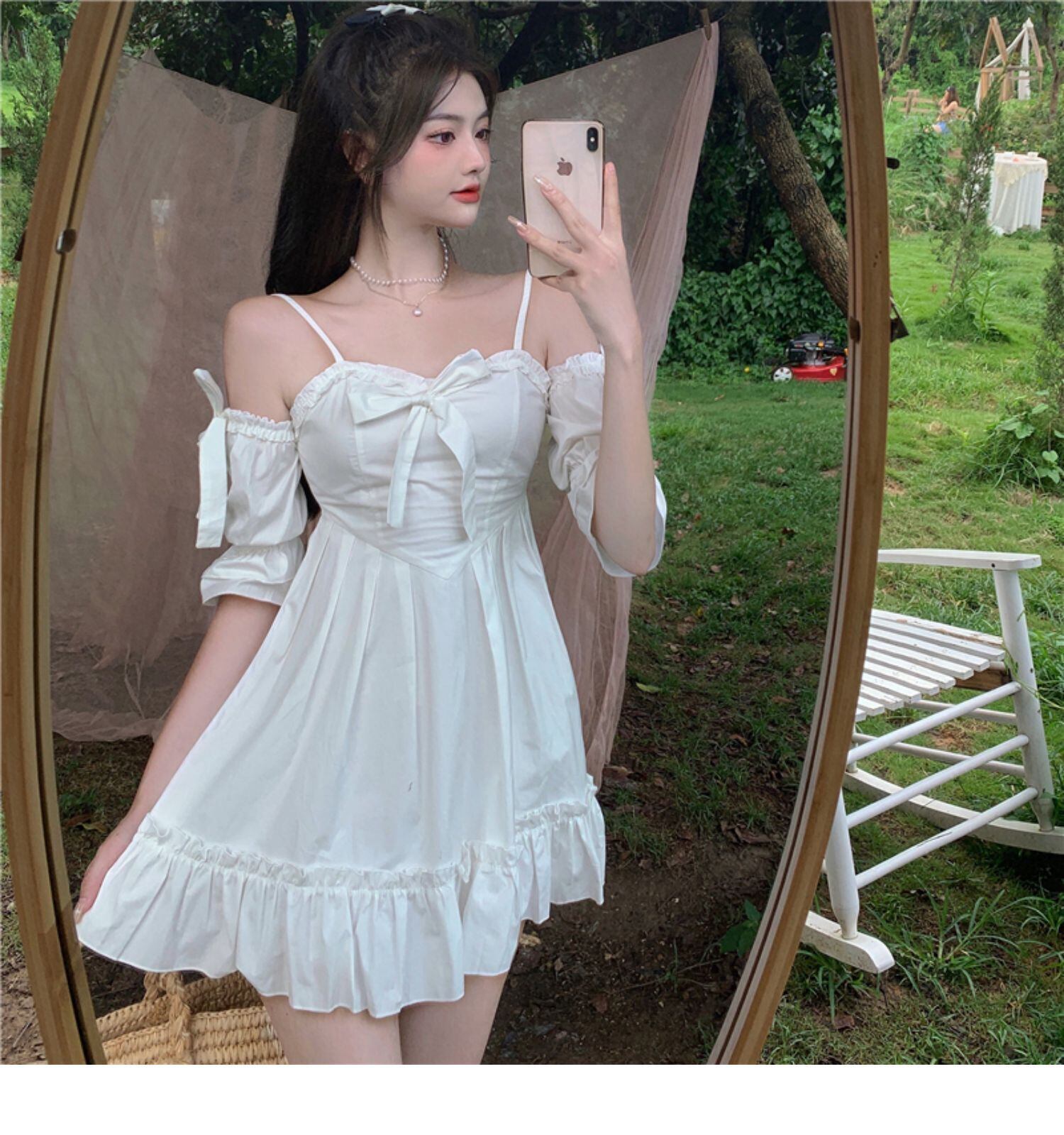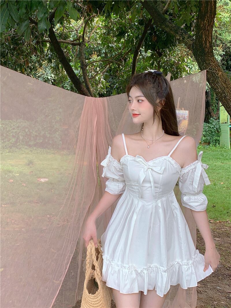 ドレス サマーホワイトAラインショートスカート リボン 夏物 ドラファッションホール37053511922