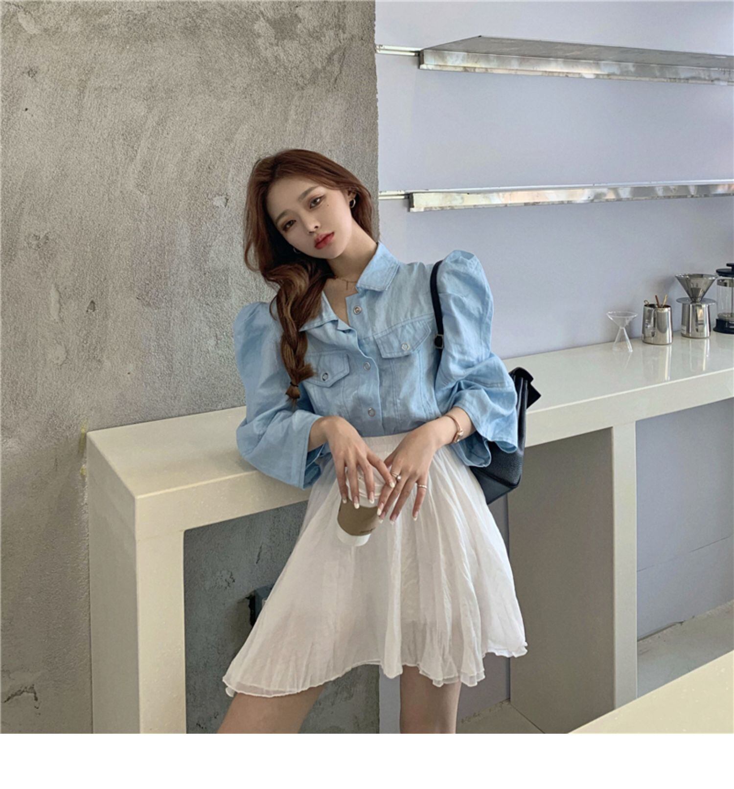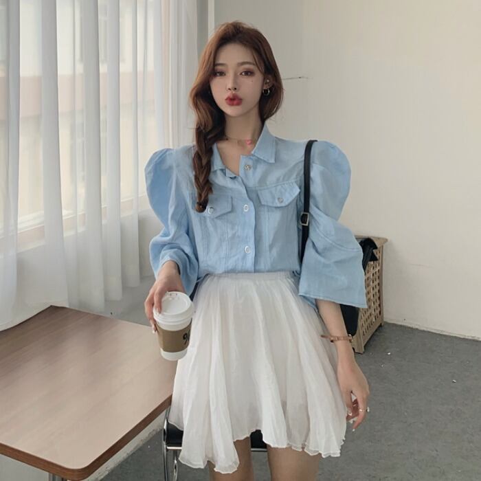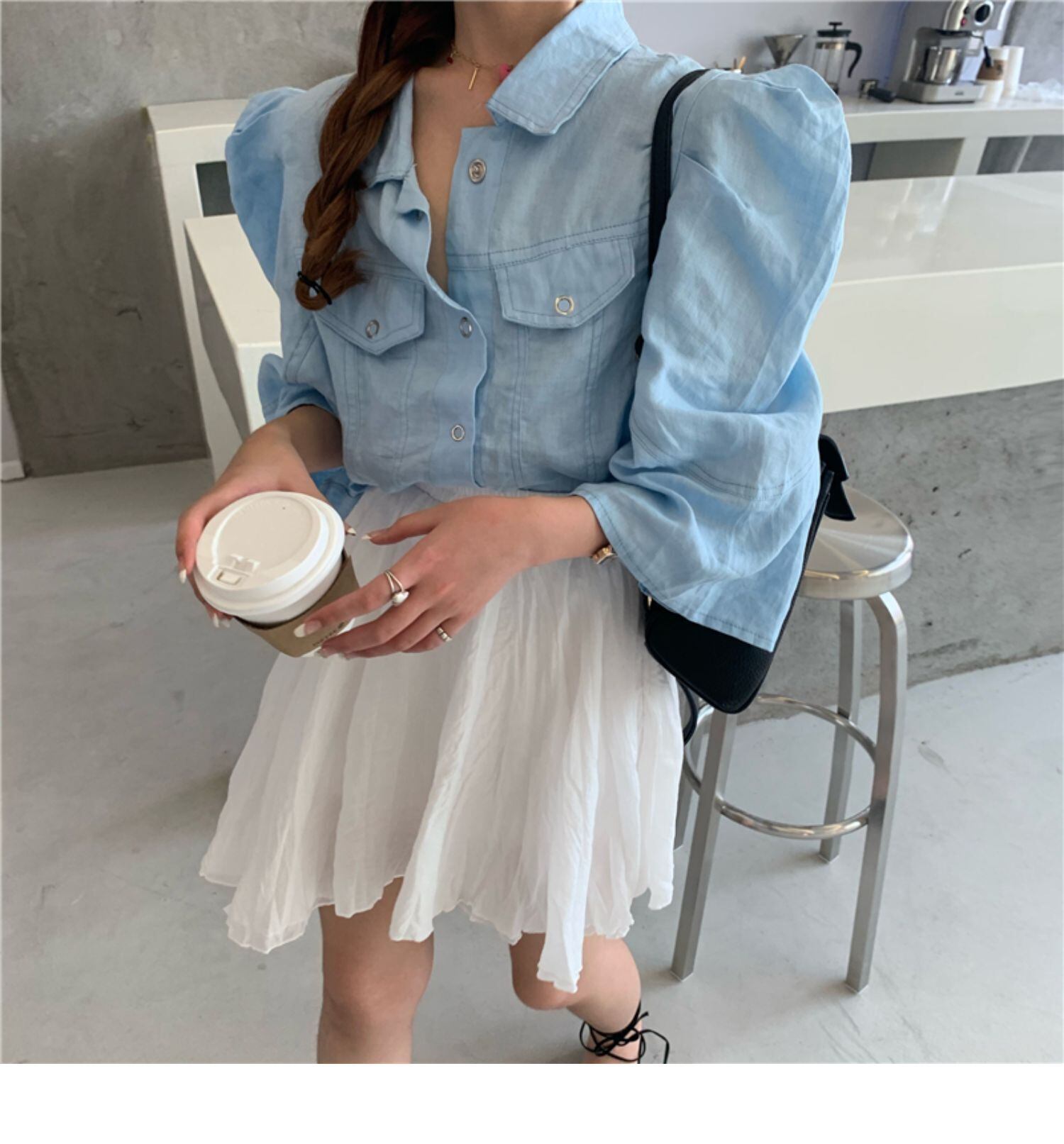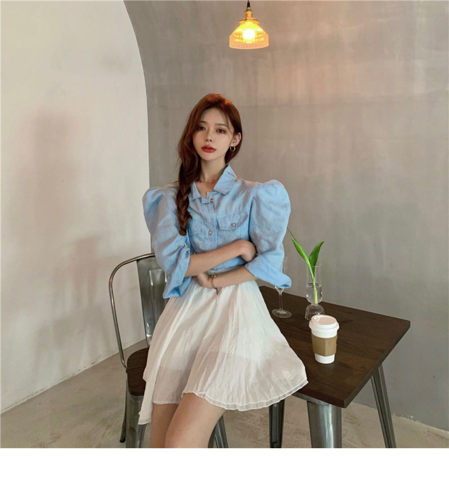 ブルーショートジャケット サマーソリッド カラーハイウェストスカート 夏物 ソリッドカラー ドラファッションホール77627170708