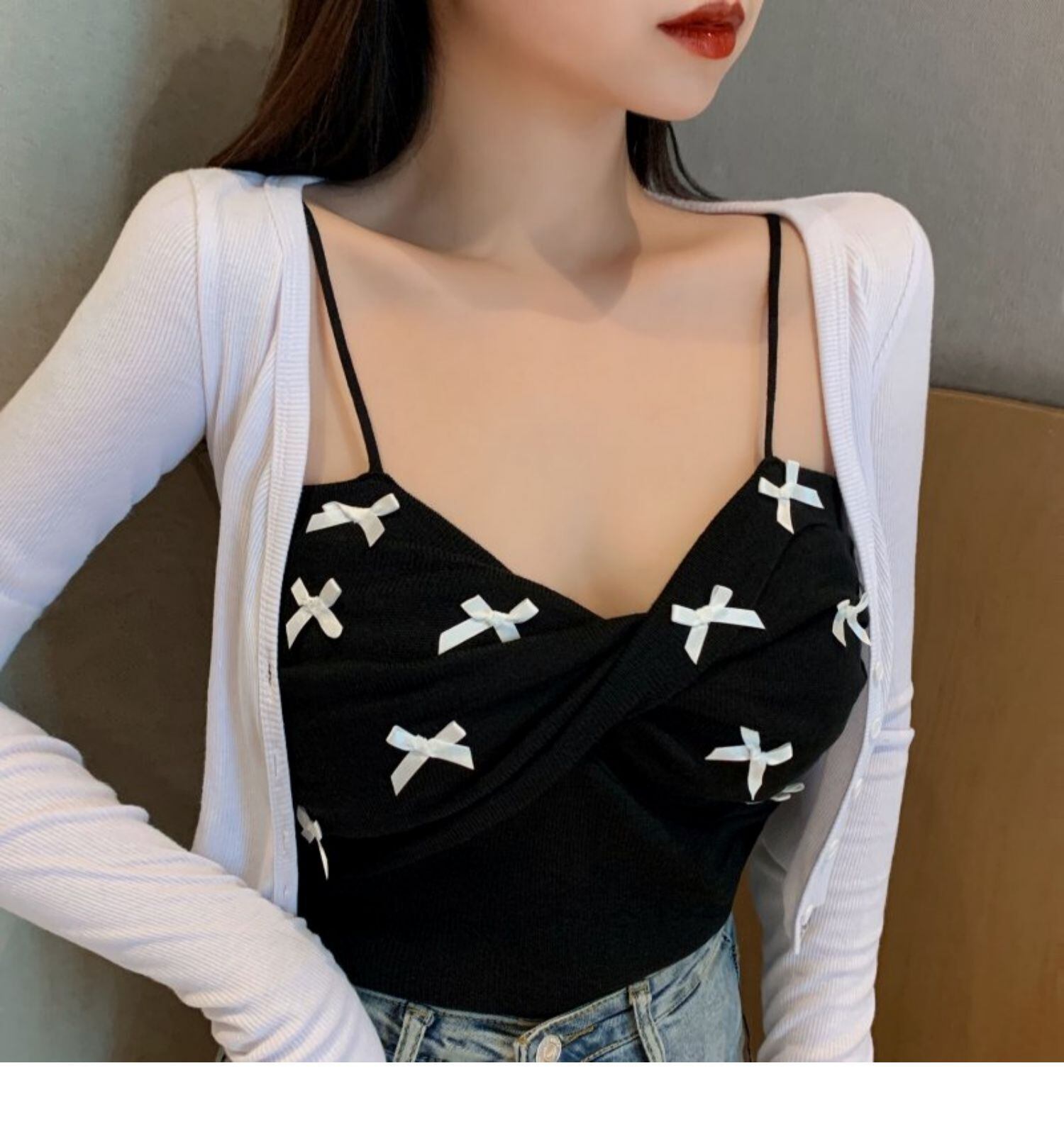 Vネックショートトップス サマー リボン 夏物 ドラファッションホール14192322200