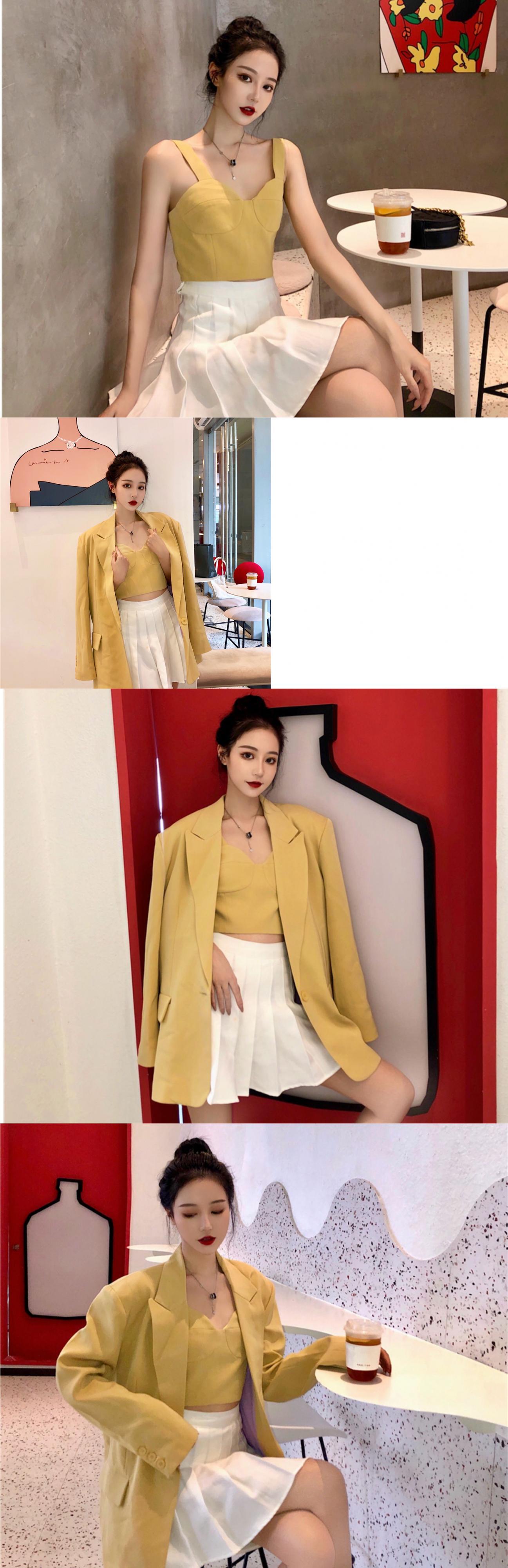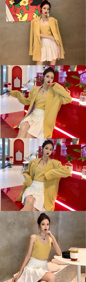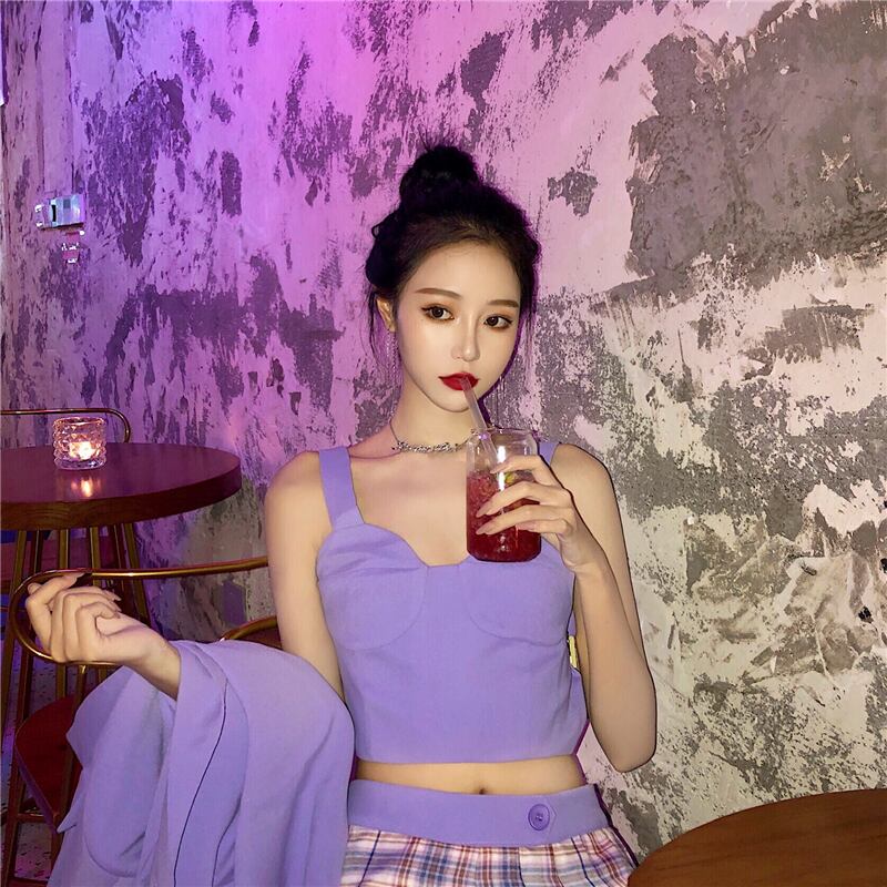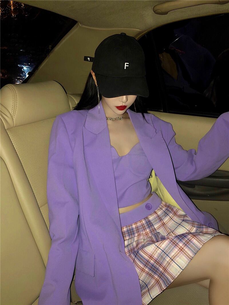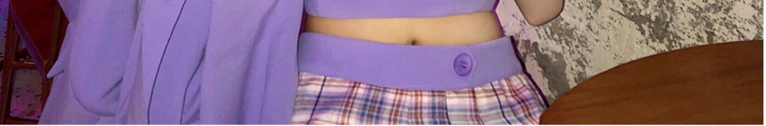 色:パープルスカート,パープルブレザー,紫のサスペンダー,イエロースーツジャケット,黄色のサスペンダー